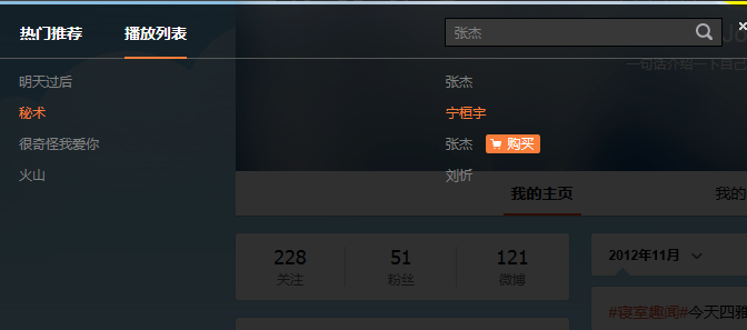 想给自己的微博设置些个性化的东西,可以添加背景音乐哦,这样就能一边听音乐、一边刷微博了,就不用打开音乐播放器了。如果你不知道新浪微博如何设置背景音乐,那就来看看带来的具体设置方法吧! 新浪微博如何设置背景音乐? 1、打开登录新浪微博的登陆界面,进入新浪微博主页,在界面最左边找到一个音乐的小图标,点击该处,你将看到如下的音乐界面展开状态,   2、点击右边的“展开列表”图标,你就看到完整的音乐列举界面。上面列举的是你听过的音乐(类似于酷狗的列表界面)   3、如果你想听其他的音乐,你可以在上方搜索栏中输入你想听的歌曲名称或者歌手的名字, 4、这些歌曲都是免费听的,不需要付费,所以你可以放心听歌。你还可以切换到“热门推荐”,看看一些最新的歌曲列表,  5、点击最前面的歌曲名称处,你将看到歌曲具体信息。点击最上方的“+背景音乐”,你就可以将该首歌设置为背景音乐了,  6、除了上述的方式,你也可以在点击“个人主页”中的“管理中心”,选择其中的“背景音乐”选项,   7、点击你想添加的背景音乐歌曲后方的“+”号,然后点击“保存”,即可成功添加为背景音乐。 如何设置边听音乐边刷微博?天时地利人和高瞻远瞩忍无可忍人世沧桑,要为自己留一点空白,留一段风轻云淡的寂寞。寂寞可以让一个人脆弱,也可以使一个人坚强;寂寞可以造就一个人,也可以毁灭一个人。50. Immediate actions should be taken to better the environment. (2013.江苏)45.马之将死,其鸣也哀;人之将死,其言也善。 生查子 晏几道潜心默祷若有应,岂非正直能感通!微博,新浪微博22、Youth will be served. |