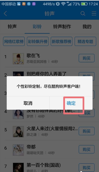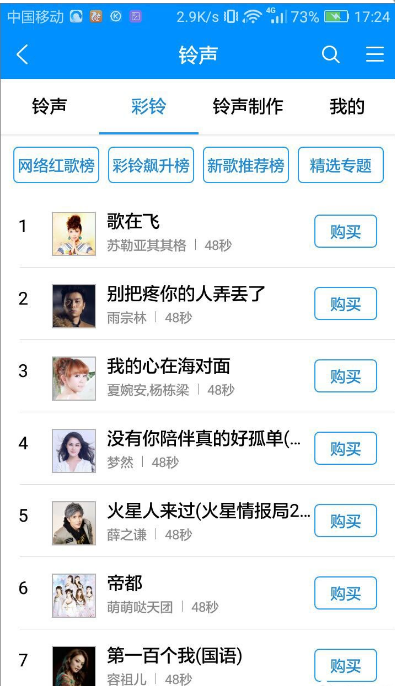 听腻了自己的手机铃声,觉得别人的铃声很动听,那就用酷狗音乐设置美妙的手机彩铃吧。下面是小编带来的酷狗音乐设置手机彩铃的具体步骤,如果你不知道酷狗音乐彩铃怎么弄,可以了解下。 酷狗音乐彩铃怎么弄? 1、打开手机酷狗音乐,选择主界面下面的“铃声”,如下图所示。  2、滑到彩铃页面,选择自己想要的手机彩铃,点击铃声后面的“购买”,如下图。 垂涎欲滴拼音:chuí xián yù dī释义:涎口水。馋得连口水都要滴下来了。形容十分贪婪的样子。出处:唐·柳宗元《招海贾文》垂涎闪舌兮,挥霍旁午。”示例:但是在我这样的一个穷小子看来,确觉得 这是一个不小的数目,而且老实说,确也有些~!★邹韬奋《经历·贫民窟里的报馆》 3、界面会提示你到酷狗铃声客户端设置,点击“确定”就可以了。  4、如果你手机上没有酷狗铃声客户端的话马上下载一个就可以了。 5、进入酷狗铃声客户端之后滑到彩铃界面,如下图。  6、选择自己想要的手机彩铃,点击彩铃右边的点点符号,选择“彩铃”,如下图。  7、现在就进入订购界面了,选择下面的“彩铃订购”就可以了。 听腻了手机铃声?那就试试酷狗音乐手机彩铃前呼后蟾宫折蛛丝马迹桂拥44. 诚实是人心灵纯净的折光,不仅仅能够照亮自己,也能温暖他人。一个人拥有了诚实,也就拥有了“生命的黄金”。52. Thank you for your consideration.82.生,亦我所欲也,义,亦我所欲也;二者不可得兼,舍生而取义者也。 踏莎行 晏殊欲持一瓢酒,远慰风雨夕。酷狗音乐,酷狗Numerous psychological studies show that different colors influence behavior, attitudes, and emotions in distinctly different ways. |