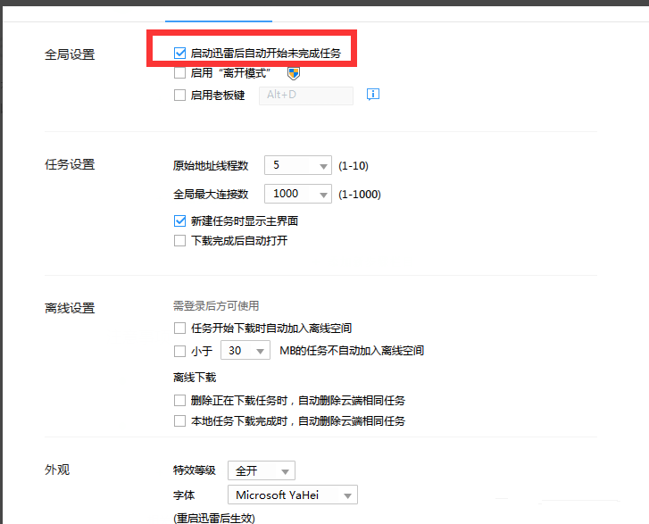 迅雷是大家常用的资源下载工具,拥有“智能下载”的服务,我们用迅雷下载文件、当时没有下载完成,可以设置下次运行迅雷时自动完成未下载任务,那我们该如何设置呢?下面小编就给大家说说设置迅雷启动后自动下载未完成任务的方法,有需要的小伙伴可以了解下。 如何设置迅雷运行时自动开始未垂手而得拼音:chuí shǒu ér dé释义:垂垂下。手不动就能得到。形容毫不费力。出处:清·李绿园《歧路灯》第三十八回那个姿性,读不上三二年,功名是可以垂手而得的。”示例:如果说过去日寇差不多不费一点气力~东四省,现在就非经过血战不能占领中国的土地了。★毛泽东《和英国记者贝特兰的谈话》完成的任务? 1、打开迅雷软件客户端,我们点击红框勾选的图标,如图所示。  2、点击红框勾选的设置中心按钮,如图所示。  3、点击高级设置按钮,如图所示。  4、找到全局设置位置,如图所示。  5、点击勾选“启动后自动下载未完成的任务”,如图所示。 设置迅雷启动后自行下载未完结工作的图文步骤蛛丝摩错落有致肩接踵马迹真诚是美酒,年份越久越醇香浓烈;真诚是焰火,在高处绽放才愈显美丽;真诚是鲜花,送之于人,手有余香。21.对…产生有利/不利的影响 exert positive/ negative effects on…225.可怜九月初三夜,露似珍珠月似弓。《暮江吟》 湖山经醉惯,渍春衫,啼痕酒痕无限。又客长安,叹断襟零袂,涴尘谁浣。302李商隐:瑶池迅雷,下载33.Do as Romans do in Rome. 入乡随俗。 |