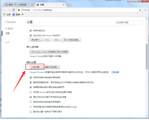 我们在用谷歌浏览器搜索浏览图片时,有时会出现图片无法加载、显示异常的情况,这是什么原因呢?该如何处理呢?下面小编就给大家讲讲谷歌浏览器图片显示异常的原因和解决方法介绍。 谷歌浏览器图片加载不出来怎么办? 这一般是由于浏览器缓存未清理、或者浏览器的设置问题造成的。当然了,前提是我们先要检查自己的网络是否正常,如果网络不正常那么肯定是不会加载图片的,如果正常那么就继续往下看。 一、缓存清理 1、启动规格浏览器,然后在其节目右上角的菜单中找到“清除浏览数据”功能,如下图:  2、在弹出的窗口中将“清除指定时间内的数据”选择“全部”并将下方的“清空缓存”勾选上,最后单击底部的“清除浏览数据”按钮即可。如下图:  二、浏览器设置问题 1、还是单击浏览器窗口右上角按钮,然后找到“设置”功能。如下图:  2、进到“设置”页面后,单击最下方的“显示高级设置”,如下图:  3、然后会看到“隐私设置”被展现出来了,这时单击其下方的“内容设置”。  4、在弹出的“内容设置”窗口中可以看到“图片”一栏,导致图片无法显示可能就是我们不小心将“不显示任何图片”给勾选上了,这时我们只需要勾选“显示所有图片”即可,如下图:  5、另外我们还可以通过“管理例外情况”,设置一些例外网站,让它不显示图片。 教你快速解决谷歌浏览器图片显示异常惊错百依百顺落有致天动地4. 少年闰土是一个“十一二岁的少年”,“我”第一次和他见面,闰土“正在厨房里,紫色的圆脸,头戴一顶小毡帽,颈上套个明晃晃的银项圈”。二十年后,“我”回到故乡,再见闰土时,他“先前紫色的圆脸,已经变作灰黄,而且加上了很深的皱纹”,“他头上是一顶旧毡帽,身上只一件极薄的棉衣,浑身瑟缩着”,“那手也不是我记得的红活圆实的手,却又粗又笨而且开裂,像是松树皮了。07 个人情况与家庭127.不入虎穴,焉得虎子。 烛影摇红 张抡火维地荒足妖怪,天假神柄专其雄。浏览器,谷歌浏览器34.An idle youth,a needy age. 少壮不努力,老大徒伤悲。 |