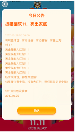 2017双十一即将到来,各大网商都相继推出了活动,淘宝也和去年一样出了捉猫猫22. 每个人的性格中,都有某些无法让人接受的部分,再美好的人也一样。所以不要苛求别人,也不要埋怨自己。活动,全民参与捉猫猫,到底2017淘宝黄金猫怎么捉?下面小编就给大家介绍双十一淘宝全民捉猫猫活动攻略,兴许有些帮助。 2017淘宝双十一捉猫猫活动怎么玩? 打开手机淘宝app,点击右上角的捉猫猫入口。  今年的玩法应该是和去年差不多,当猫处于镜头中时,点击丢箱子按钮,即可丢出箱子,砸中则猫进入箱子。砸不中可继续砸,连续3次箱子砸不中,则猫会逃走。  被砸中后进入箱子的猫存在逃走的可能,约1-2秒后出结果,页面上会弹出提示文案确认是否捕抓成功,若猫最终未逃走,则捉猫成功。 2017淘宝捉猫猫活动玩法介绍青山绿水情行动迟缓同手足41. 我不太相信缘分,但是缘分却让我们相遇,相知,相惜。你像一片云彩,在一个风轻云淡的日子,轻轻地飘落在我的家园。默默地来,悄悄地去。我的家园从此不再荒芜,虫鸟鱼草,字画诗文,百花齐放。因为你的停留,我的世界更加精彩。40. As a proverb says, /( As is well known to us,) storms make trees take deeper roots.316.读书千遍,其义自见。《熟读精思》 天香 王沂孙蕃情似此水,长愿向南流。淘宝What is also worth noticing is that… |
