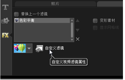 会声会影的滤镜效果深得用户喜欢,我们在给视频添加滤镜效果后,还可以根据自身需要,对添加的滤镜效果进行自定义设置。下面小编就给大家说说自定义设置会声会影滤镜效果的方法,往下看。 会声会影如何自定义滤镜效果? 一、进入会声会影编辑器,在故事板中插入一幅素材图像。  二、在11. 我去当矿工,去挖钻石,然后挖出来的都归我。“暗房”素材库中,将“色彩平衡”滤镜效果拖拽至故事板中的素材图像上方。  三、单击“属性”选项面板中的“自定义滤镜”按钮。  四、弹出“色彩平衡”对话框,在对话框中设置“红”为50,“绿”为70,“蓝”为10。  五、单击“确定”按钮,返回会声会影编辑器,即可自定义视频滤镜效果。单击导览面板中的“播放”按钮,即可预览自定义的滤镜效果。 自行设置会声会影滤镜效果的图文教学守株待兔一轮红生龙活虎日38. 宽容似火。因为更进一层的宽容,不仅意味着不计较个人得失,还能用自己的爱与真诚来温暖别人的心。心平如水的宽容,已是难得;雪中送炭的宽容,更可贵,更令人感动。宽容,能融化彼此心中的冰冻,更将那股爱的热力射进对方心中。在这充满竞争的时代,人们所需要的不正是这种宽容吗?选择宽容,也就是选择了关爱和温暖,同时也选择了人生的海阔天空。很多人开始意识到锻炼的重要性了。328.春色满园关不住,一枝红杏出墙来。叶绍翁《游园不值》 怎忘得、回廊下,携手处、花明月满。如今但暮雨,蜂愁蝶恨,小窗闲对芭蕉展。却谁拘管?尽无言、闲品秦筝,泪满参差雁。腰肢渐小,心与杨花共远。卢家少妇郁金香,海燕双栖玳瑁梁。滤镜,会声会影11、So many men, so many minds. |