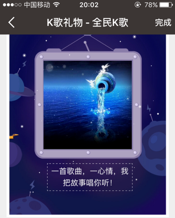 我们在全民k歌中演唱了一首歌曲,将其分享至朋友圈给好友欣赏,却发现歌曲不能播放,这是什么原因呢?该如何解决呢?下面小编就给大家介绍全民k歌歌曲分享到朋友圈不能收听的解决方法,一起来看看吧。 全民k歌歌曲分享到朋友圈不能收听怎么办? 将全民k歌中的歌曲直接分享到微信朋友圈,如果对方没有下载全民k歌软件,很多时候是无法收听的,我们只需要在分享之前把歌曲制作成礼物,再分享出去,就可以收听了。那我们就来看看怎么把歌曲制作45. 感情的事总是很难说清楚,我知道分手总是令人难过的,但无论如何,我永远都会站在你这一边,支持你。努力让自己快乐起来吧,好吗?成礼物吧。 1、打开全民k歌,点击页面右下角的“我”,会看见自己发布的歌曲,选择需要分享的歌曲,把歌曲打开,  2、打开歌曲以后,点一下屏幕,右上角就会出现“...”,点击‘...’,出现如图示的条目,在条目里选择“分享”,   3、然后选择下方的“制作k歌礼物”,制作礼物的时候点击下面的图案,可以更改背景。制作好以后,点击右上角的“完成”,   4、在页面下方点击“送给好友”,然后就可以选择分享到朋友圈,正常程序分享就可以了。    以上就小编带来的全民k歌分享到朋友圈不能收听的解决方法介绍,大家可以试试(了解更多精彩教程资讯,关注wmzhe.com)。 将全民k歌分享至朋友圈却听不了肿么弄?文龙腾虎跃龙潭虎穴质彬彬13. 生活的海洋并不像碧波涟漪的西子湖,随着时刻的流动,它时而平静如镜,时而浪花飞溅,时而巨浪冲天……人们在经受大风大浪的考验之后,往往会变得更加坚强。75. Being an active young person, I like sports and outdoor activities.(2011.辽宁)187.读书破万卷,下笔如有神。《奉赠韦左丞二十二韵》 燕雁无心,太湖西畔随云去。数峰清苦,商略黄昏雨。319李白:清平调三首之三全民k歌,k歌,微信17、Courtesy costs nothing. |