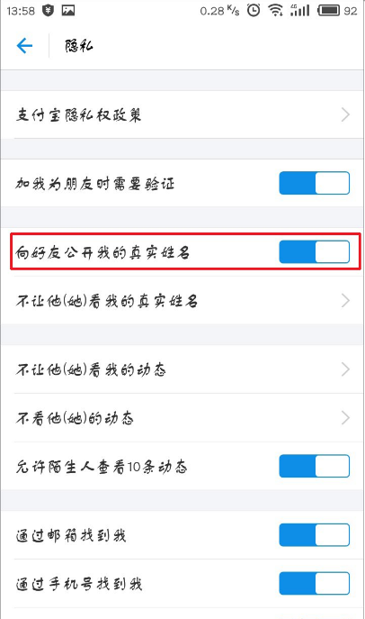 支付宝在我们的日常生活中经常用到,在支付宝中加好友后,默认对方可以看到自己的真实姓名,如果你不想把自己的真实姓名暴露给所有的好友,可以设置让某些人看不到自己的真实姓名。那我们该如何设置在支付宝部分好友面前隐藏真实姓名呢?请看小编带来的详细介绍。 支付宝如何设置隐藏自己真实姓名? 1、首先打开手机支付宝,点击右下角“我的”,进入下图所示界面,点击右上角“设置”按钮,  2、在打开的设置页面中,找到“隐私”按钮并点击,  3、点进去后,点击“向好友公开我的真实姓名”,将旁边的蓝色按钮关掉,这时就向支付宝所有好友隐藏了自己的47. 后悔是一种耗费精神的情绪,后悔是比损失更大的损失,比错误更大的错误,所以不要后悔。真实姓名。  4、然后再点击下面的“不让他(她)看我的真实姓名”,设置只让部分好友看到自己的真实姓名。  5、在打开的设置页面中,点击“+”,在通讯录中添加要隐藏的名单,  6、在打开的好友列表中,选择要隐藏姓名的好友名称,再点击“确定”按钮,  7、选中的好友已经添加到隐藏名单中了,最后点击“完成”按钮。 支付宝中设置不让某人看到自己姓名的详细图解头静静地想(静思默想)春雷滚滚重脚轻6. 我以前开玩笑夸他,他竟然感到不安。我知道,其实成功与否,都是需要自己默默努力的事情,别人的褒贬,只是累赘。之后就不再提。这份工作太辛苦、太无聊,而且没完没了,这使我非常累,差点半途而废。27.辅车相依,唇亡齿寒。 鹧鸪天 周紫芝落叶满空山,何处寻行迹。支付宝Anyhow, wider (more) education (publicity) should be given to the possible (potential / grave / serious / pernicious) consequences (effects) of… |