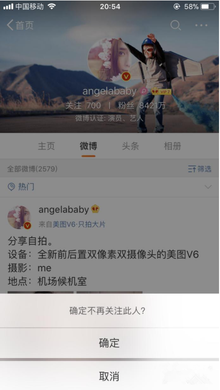 我们在刷微博时都会关注一些博主村箫社鼓拼音:cūn xiāo shè gǔ释义:指民间鼓乐。出处:无示例:今天的晚会,村箫社鼓热闹非凡。明星,可以了解到许多新鲜的趣闻,如果你不想再关注某个人可以取消关注的。有些小伙伴不是很清楚新浪微博手机版怎么取消关注别人,下面小编就来给大家具体演示一遍。 新浪微博手机版怎么取消关注? 1、首先,我们打开手机微博,点击想取消关注人的头像。  2、点击之后,进入到关注人的个人主页,然后点击左下方的“已关注”。  3、点击已关注之后,弹出两个选项,我们选择“取消关注”。  4、然后系统弹出确定不再关注此人,我们点击确定。  5、确定之后,右下角变成了橙色的+关注,我们就取消关注成功了。 手机新浪微博不再关注某人的设置方法高山深涧冰封大烈日当头地1. “人生永没有终点。”只有等到你瞑目的那一刻,才能说你走完了人生路,在此之前,新的第一次始终有,新的挑战依然在,新的感悟不断涌现……15. We should get into the good habit of using our time wisely.183.为人性僻耽佳句,语不惊人死不休。《江上值水如海势,聊短述》 萧条庭院,有斜风细雨,重门须闭。宠柳娇花寒食近,种种恼人天气。险韵诗成,扶头酒醒,别是闲滋味。征鸿过尽,万千心事难寄。忽然遭时变,数岁亲戎旃。微信,新浪微博24、Experience is the best teacher. |