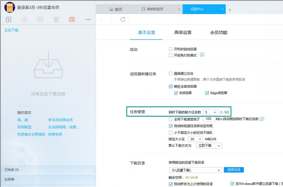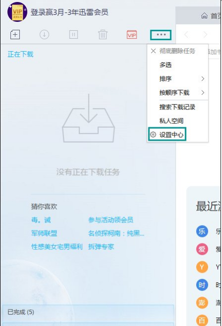 迅雷是大家比较常用的一款下载工具,当你需要下载多份文件资源时,可以设置同时下载多个任务。如果你感觉不如一项项任务下载快,也可以将最大下载任务数重新设置一下,下面是具体的设置方法。 迅雷同时下载数量怎么设置? 1、首先打开迅雷软件,在界面上找到“···”并点击。  2、打开主菜单后,点击“设置40. 你可以用你的一生去诠释爱情,但是爱情却不能诠释你的一生!中心”。  3、之后右边会出现“设置中心”界面,这里我们可以看到最大任务数是5。  4、点击“最大任务数”的小箭头,将下载数量设置为1个或者3个。注:最高可为50,最低为1。  5、之后不需要随意点击空白处,就可以自动保存该设置。  以上便是迅雷设置同时下载任务数量的一些参考,用户可以根据下载需求来设置(了解更多精彩教程资讯,关注wmzhe.com)。 设定迅雷一次性下载任务量的图文参考日高三万木华灯初上葱茏尺19. 柔和的阳光斜挂在苍松翠柏不凋的枝叶上,显得那么安静肃穆,绿色的草坪和白色的水泥道貌岸然上,脚步是那么轻起轻落,大家的心中却是那么的激动与思绪波涌。造句:In 1951 Chairman Mao said in Nan Jing that the power of the mass is endless.306.夜阑卧听风吹雨,铁马冰河入梦来。《十一月四日风雨大作》 法曲献仙音 王沂孙剧辛乐毅感恩分,输肝剖胆效英才。迅雷32.The older, the wiser. 姜是老的辣。 |