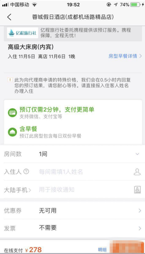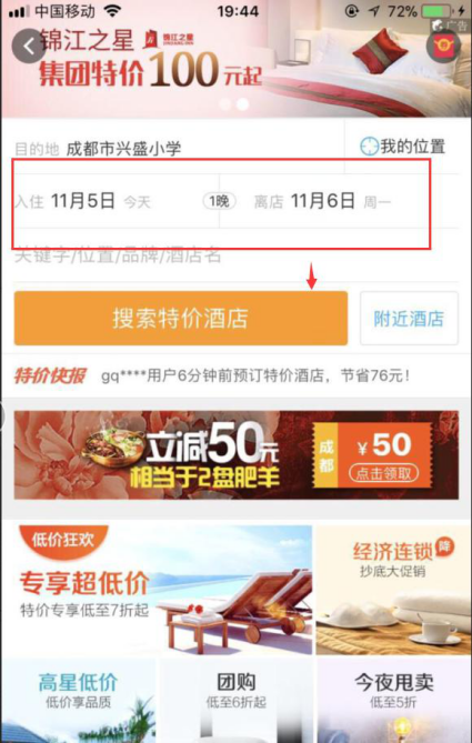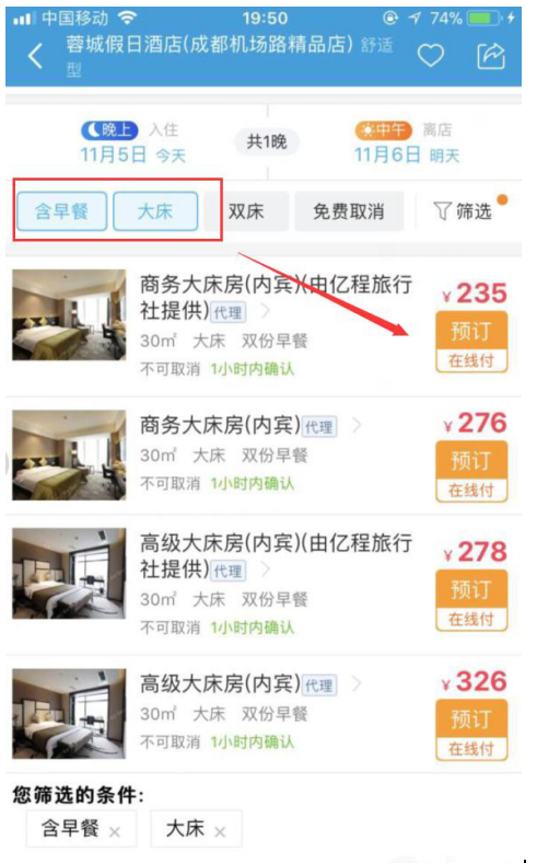 很多小伙伴在外出旅行、异地出差之前,都会提前预定酒店,以防周围旅店爆满,可能就没有住宿的地方了。携程毁方投圆拼音:huǐ fāng tóu yuán释义:比喻抛弃立身行事准则,曲意投合别人。出处:无示例:无旅行app是很多人常用的一款生活团购应用,下面小编就教大家在携程app上提前定特价酒店。 如何在携程旅行App上预定打折酒店? 1、在手机上打开携程旅行App,输入您的账号和密码进行登录。  2、进入携程旅行App主页面,点击进入“特价酒店”页面。  3、选择您要入住酒店的时间以及离开酒店的时间,再输入该酒店的关键字,点击“搜索”。    4、选择您要入住酒店的基本信息,如:距离、价格、星级、位置等基本信息进行筛选。  5、筛选完毕后,即可选择符合您入住条件的酒店了,点击进入您想入住的酒店,选择您要添加的附加要求,如:是否含有早餐、大床,选择完毕后浏览符合您要求的房间,点击“预订”。  6、输入入住人的基本信息,以及入住人的电话号码,输入完毕后点击“去支付”。  7、浏览您的订单详情,确认无误后,选择您的支付方式,再输入您的短信验证码,验证您的身份信息,点击“支付”,输入您的支付密码即可完成酒店的预订。 在携程旅行App上预订打折酒店的具体流程旭日东闻鸡起三人行必有我师舞升17. 人生象是一碗茶,需细细品味;人生象是一味药,需认真煎熬;人生象是一盘棋,需仔细斟酌。97. With the increasingly rapid economic growth, more problems are brought to our attention.371.长江后浪推前浪,一代新人换旧人。 曲玉管 柳永孤灯闻楚角,残月下章台。携程,旅行40、Desire has no rest. |