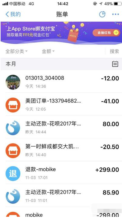 摩拜单车的出现给我们的生活带来了便利,我们每次使用摩拜单车都会有记录产生的,如果你对自己的消费金额不太清楚,可以查看消费记录。那我们该如何查询摩拜单车消费记录呢?下面小编就给大家详细介绍摩拜单车消费记录的查看方法。 摩拜单车消费记录在哪里查看? 方法一 1、打开支付宝App,进入主页,点击右下角“我的”,再点击“账单”。  2、51. 遇到你之前,世界是一片荒原,遇到你之后,世界是一个乐园,过去的许多岁月,对我像一缕轻烟,未来的无限生涯,因你而幸福无边。进入账单页面,点击“搜索”按钮,手动输入“mobike”,再点击“搜索”即可出现mobike单车的消费记录。    方法二 打开摩拜单车App,进入主页,点击左上角,进入菜单页面,点击进入“我的钱包”。   进入我的钱包页面,点击右上角“明细”按钮,即可出现mobike单车消费记录。  查询摩拜单车扣费情况的方法整理耳夜色柔美闻目睹枪林弹雨2. 天空包含着白天和黑夜,即使黑夜的阳光远不及白天,但天空却不能失去黑夜,就像黑夜不能失去星星。我们中的有些人总是理所当然地认为,父母或者祖父母应该照顾我们。71.老吾老,以及人之老;幼吾幼,以及人之幼。 凤箫吟 韩缜感时花溅泪,恨别鸟惊心。摩拜单车32、Out of sight, out of mind. |
