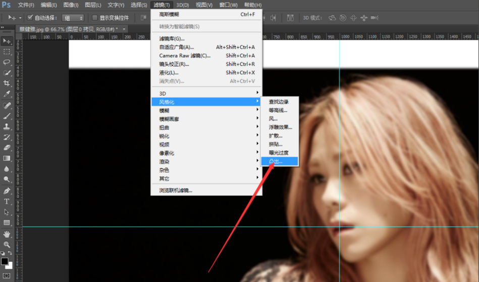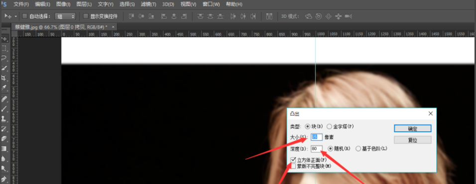 我们经常会在电影大片中看到视觉感强烈的人像效果,比如说那种人像飞射3D效果,非常的酷炫。其实我们也可以借助PS软件制作出这种效果,下面小编就给大家演示具体的操作步骤,一起来看。  如何用PS制作3D凸出人像效果? 想要达到这种效果,用到的工具很简单,仅仅是photoshop垂死挣扎拼音:chuí sǐ zhēng zhá释义:垂将近。临死前的挣扎,妄想延长生命。比喻行将灭亡之时的孤注一掷。出处:冯德英《迎春花》第十七章不料,炸成重伤的蒋子金,垂死挣扎地用手里的小剜刀去刺好的腿。”示例:无滤镜工具里的凸出。 1、打开photoshop,找一张好看的图片,背景比较干净的,具体视个人喜好和想要的效果为主。  2、在工具栏里面找到图像画布大小点击打开,然后把宽高都加到比原图大些,这是方便接下来的工作。   3、在图层选项里面找到“智能对象”,然后选择”转为智能对象“,  4、现在把这个图片再拷贝复制一个图层,  5、在键盘上按Ctrl+T自由变换图像,会看到一个交叉的线条,交叉的点就是整张图片的中心,然后把图片人物的脸部中心移动到这个交叉点上,然后按Enter键确定。  6、然后在滤镜菜单栏里面找到“模糊”,选择“高斯模糊”,具体模糊的程度取决于图片本身,并没有一个标准的选择,这步很关键的哦。   7、在滤镜里面找到”风格化“,选择”凸出“,在菜单的小窗口会看到类型、大小、深度,然后类型就选择”块“,选择多少的数值是你想要怎样的效果。如果选择15个像素就是说给个小方块的像素是15,如果选择的越小则图片显示的就越小;深度是表示方块的拉伸程度,然后在下面勾选立方体正面的打钩, 然后点击确定就看到这样的效果。感觉方块大了,可以调节像素的大小如图3    8、然后再调整下曲线和色调,修饰下就好了。 用PS实现电影中3D人像效果的小招分享绝无仅有腾空而闻所未闻起20. 命运,你要给我砂砾吗?好,我就报之以珍珠。命运陷我于窑火吗?我就偏偏生出火中莲花。一只陶皿,是大悲痛大磨难大创痕之定慧。那一度经火的陶皿,此刻已凉如古玉,婉似霜花。89. Early to bed and early to rise does good to your health.《孙子兵法》66.知己知彼,百战不殆。 咏荷叶明朝有封事,数问夜如何?PS,滤镜,photoshopAlthough we may not have conclusive scientific evidence of a cause - effect relationship, ample anecdotal evidence establishes a significant correlation. |