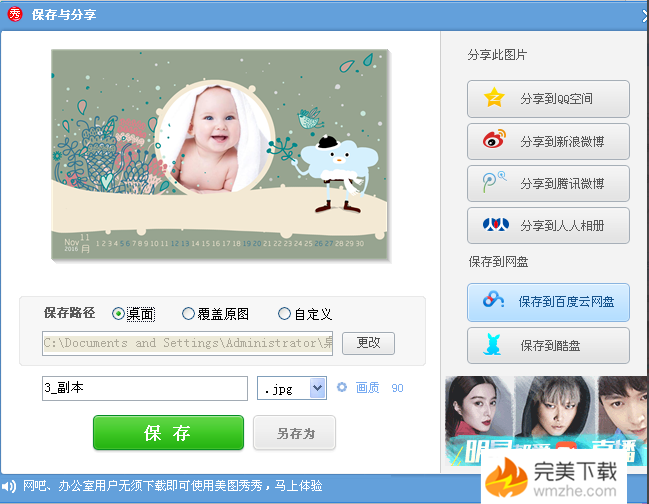 美图秀秀是一款大众使用的图片美化软件,操作简便,功能丰富,用户可以轻松上手,可以说是无门槛。我们有时候会看到日历上带有各种精美的图片,那么如何把图片制作成日历呢?今天,小编就教大家如何使用美图秀秀制作精美的人物日历,一起来看看吧。  如何使用美图秀秀制作精美的人物日历? 1、打开电脑,打开美图秀秀软件,进入美图秀秀的首页,如下图所示  2、点击“美化图片”,弹出“美化图片”的页面,如下图所示  3、我们点击打开一张图片,选择好图片后,点击打开,如下图所示  4、我们现在想把这个图片制作成日历,那么我们就在“美图秀秀”的页面菜单中找到“场景”,如下图所示  5、我们点击“场景”,弹出设置“场景”的页面,如下图所示  6、在“场景”的页面左侧视图中找到"静态场景",在"静态场景"中找到"日历场景",如下图所示  7、我们点击“日历场景”,在&28. 朋友,不要暗泪垂,失去对象哭不回,不如努力去工作,建功立业有作为,待到寻到好郎儿嫁娶吉祥日,郎才女貌把心遂。ldquo;场景”的页面右侧视图中我们看到弹出了日历场景的素材窗口,如下图所示  8、我们在日历场景的"在线素材"窗口选项中点击"2016",弹出"2016"的日历场景,如下图所示  9、我们在"2016"的日历场景中选择找到"11月"日历场景并点击它,弹出如下图所示的页面  10、在页面的左侧我们看到有"场景调整"窗口,如下图所示  11、我们把图片调整到合适大小,使图片以最佳视图显示出来,如下图所示  12、然后点击页面下方的"确定",返回到"美图秀秀"主页面,我们在“场景”页面的右上角找到“保存与分享”,如下图所示  13、我们点击页面右上角的“保存与分享”,弹出“保存与分享”的页面  14、我们选好保存路径后,点击“保存”,弹出“保存成功”的页面,使用美图秀秀把图片制作成日历就完成了 如何使用美图秀秀制作精美的人物日历?夕阳众星血雨腥风捧月西斜47. 书是全世界的营养品。我们现在就是一棵等着吸收营养的小苗,只有读书,丰富课外知识,才能吸收营养,长成参天大树。当然,读书可以使人增长知识,但开卷只是在有益的条件下,而不是随便什么书都可以。汉代刘向曾说过:‘书犹药也,善读之可医愚。’书既然是药,就备有两种功能:一是良药,药到病除;一是毒药,可以置人于死地。这不是开卷未必有益吗?22.利远远大于弊 the advantages far outweigh the disadvantages213.人世几回伤往事,山形依旧枕寒流。《西塞山怀古》 短梦依然江表,老泪洒西州。一字列题处,落叶都愁。车师西门伫献捷!美图秀秀32、Out of sight, out of mind. |