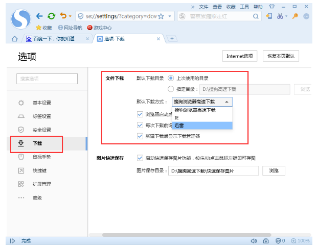 最近有小伙伴反映说,自己在搜狗浏览器中使用迅雷下载文件时,总是显示外部下载工具启动失败,这是怎么一回事呢?该如何解决呢?如果你也遇到了此类问题,那就快来看看这篇攻略吧。 搜狗浏览器启动外部下载工具失败怎么办? 1、首先我们打开迅雷9(迅雷7的用户请看第5步),然后在其右上角的菜单中打开“设置中心”;  2、接着在设置中心的“基本设置”中找到浏览器新建任务,然后勾选上“搜狗浏览器”或者“响应全部浏览器”;  3、之后我们再打开搜狗浏览器,并在右上方的工具中打开“选项”;  4、来到选项界面后找到“下载”分类,然后在右边的“文件下载”中,将“默认下载方式”更换成“迅雷”就可以了;  5、31. 恋情是生命的全部,失恋是恋爱的前提,她会让我心动,但不会让我死心,我要好好的活下去,前面有更好的风景。另外迅雷7中有一个“修复浏览器关联”的功能,如果你使用的不是迅雷9,那么直接按照下图操作即可。 搜狗浏览器不能用外部下载器,小编教你解决春意盎七拼八转危为安凑然19. 人生旅程并不是一帆风顺的,逆境失意会经常伴随着我们,但人性的光辉往往在不如意中才显示出来,期望是激励我们前进的巨大的无形的动力。for one thing …, for another (thing) … 首先……,再者……96.塞翁失马,焉知非福。《淮南子》 思远人 晏几道州边鄙而退,岂力能制敌欤?盖蒙其伤怜而已!诸史何为忍苦征敛!故作诗一篇以搜狗浏览器,浏览器,搜狗,迅雷What the arguer fails to understand (consider /mention) is that… |