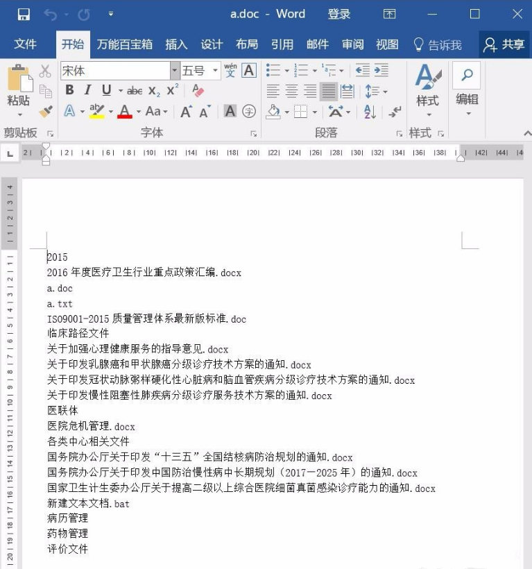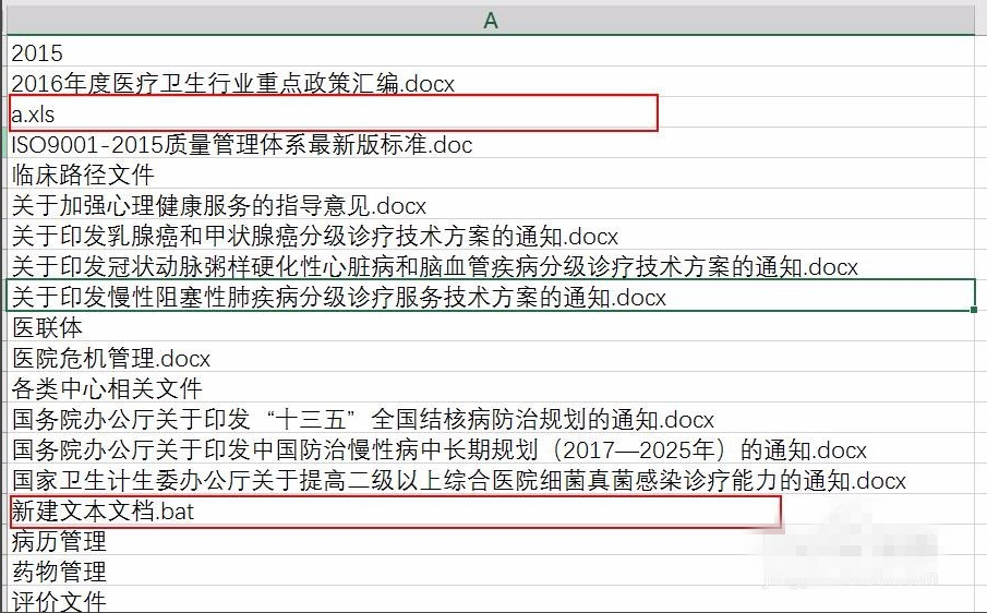 工作生活中我们可能会遇到批量提取同一文件夹内文件名的情况,如果文件不多可以一个一个手动输入,如果文件数量多采用这种办法就很麻烦了。下面小编就给大家介绍一种快捷提取方式,一起来看。 如何批量提取同一文件夹内的文件名称? 1、对需要提取名称的文件进行整理,确保所有文件都位于同一文件夹内。 为了后期处理方便,建议该文件夹内不要有其他文件。以下图为例,新建了一个名为“实验”的文件夹,仅将需处理文件至于其内。  2、在该文件夹内新建一个空白的txt文档。此处只能使用txt文档,不能使用Word或者Excel文档。  3、在txt文档内输入代码 dir *.*/b>a.xls并保存。 这是DOS命令下经常用到的一段代码,意思是提取所在文件夹内所有文件名,并将结果存储在xls文件中。  4、将该文档的.txt后缀修改为.bat 后缀,并保存。此时的文档图标已经变为齿轮状,表明保存成功。   5、双击“新建文本文档.bat"文件,可以看到屏幕一闪之后在文件夹内出现了一个名为a.xls的EXCEL文件。打开该文件可以看到所有文件名都已经被导入。  6、需要注意的是,由于是无差别提取,所以该命令将“新建文本文档.bat"和“a.xls"也导入进来,需要手动删除。但是相比之下工作效率已经提高很多。  7、如果想导出到word文档或者txt文档,只需要将代码修改为 dir *.*/b>a.doc或者dir *.*/b>a.txt。   代码dir *.*/b>a.xls中的a只是示例中使用的文件名,使用者可以根据需要修改,例如可以修改为dir *.*/b>文件.xls,那么最后就会生成一个名为文件.xls的EXC毁于一旦拼音:huǐ yú yī dàn释义:于在;一旦一天。在一天的功夫全被毁掉。多指长期劳动的成果一下子被毁掉。出处:《后汉书·窦融传》百年累之,一朝毁之。”示例:百余年辛苦经营的圆明园,~,更是令人椎心泣血的莫大恨事。(高阳《清宫外史》下册)EL文件。 一次性提取文件夹中全部文件名,小技巧给到你艳阳高照心平气波涛汹涌和10. 当第一缕阳光照耀大地的时候,我们便和千千万万的中学生一样,开始了漫长的求学之路。走进教室,再也找不见小时候踏入这里的欣喜,取而代之的竟是无比的压抑。看着那一张张陌生的脸,心中又升起点点惆怅。昔日那熟悉的脸庞,如今早已不知去向。户外活动确实对我增强体质和丰富学校生活有益。356.万事俱备,只欠东风。 瑞鹤仙 袁去华黄尘足今古,白骨乱蓬蒿。EXCEL,word6、Keep something for a rainy day. |