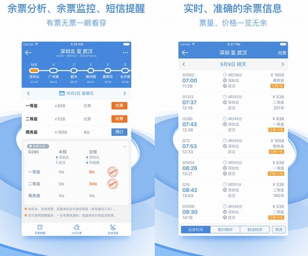 元旦小假期快到啦,有出行准备的小伙伴们有没有事先买票呢?元旦是出行高峰期,车票机票都很紧张哦,大家一定要提前买票,下面是小编为大家精心整理的手机订票软件,省去你排队买票的时间啦。 12306APP 12306APP是大家熟知的一款手机购票软件,12306手机客户端与12306网站共享用户、订单和票额等信息,并使用统一的购票业务规则,购票更方便。软件具有车票预订、在线支付、改签、退票、订单查询、常用联系人管理、个人资料修改、密码修改等功能,为旅客提供方便快捷的手机购票全新体验。  旅客通过12306APP或者官网购票时,可以根据系统提供的动车组列车座位示意图“自主选座”。“自主选座”仅支持C、D、G字头的动车组列车选座,且仅提供相邻座位关系选择,如果剩余车票不能满足需求,系统将自动分配席位。旅客如不自己选择座位,系统将自动分配席位。 铁友火车票app 铁友火车票app独创全国铁路旅行一站式服务业务,是国内领先的铁路旅行服务专业平台,高效整合铁保通综合旅行服务、物流服务、酒店机票等在线预订服务。  铁友火车票APP功能特点 【余票查询】随时随地掏出手机瞄余票,潇洒出行就是这么任性 【官方出票】承接12306官方出票通道,正规票源,根正苗红 【自动抢票】令人激爽的抢票体验,预约抢票、抢别人退票全搞定 【在线选座】选下铺、连座、靠窗票,轻松搞定,高铁动车还可自主选座 【上车补票】自动检索可买票的站点,先上车再找动姐补票,妥妥的 【省钱退票】退票还要20%手续费?铁友帮你一省到底,全程脱光 【强大支付】你能想到的地球上的银行、支付宝、微信支付全在这里啦 【票种多样】成人票、儿童票、残军票、护照购票,就差给外星人购票 智行火车票app 智行火车票app是国内有一定知名度的订票应用,能够帮助用户在很短的时间内订到需要的车票,是一款实用蛮方便的订票软件。  智行火车票app功能特色 【余票监控】自动监控余票,一旦有票就会第一时间通知您; 【智能查询】分析附近站点的余票,大大提高买到票的几率; 【在线支付】实现在线支付功能,可以完全不依赖电脑购票; 【酒店机票】通过地图查找酒店,实现特价机票火车票比价; 【其他功能】购买高铁,动车票,同时支持12306网站和铁路12306购票。 高铁管家APP 高铁管家APP是一款功能强大的手机火车票订票软件,打开高铁管家,首页的出发地、目的地、出发时间一目了然,简洁干净的交互界面给人一种快速、高效的感觉。此外,在首页右上角(下图红圈所示)的地方,高铁管家还提供了国内最新最全面的高铁线路图,这个功能目前来看在手机App上还是国内第一家。  为了打造出完美的用户体验,高铁管家还提供了在线退票、改签的功能,用户可以直接在高铁管家上完成操作。高铁管家还支持将所关注的车次信息分享到微博、微信等社交媒体。 快票出行app 快票出行app是一款手机购票软件,为用户提供便捷的车票订购功能,用户可以在这里快速选购自己需要的各类车票,同时还能抢购火车票,更有旅游景区门票订购,为用户生活旅游出行提供方便。 快票出行APP支持全国八千多个景点的门票购买,同时支持全国所有车次的火车票购买,支持一、二、三线城市的主要车站的汽车票购买,非常实用哦。  以上几款手机购票软件可谓是非常实用,如果你没时间去车站买票,只要在手机中安装了这些软件就可以提前订票咯。 27. 你开心的时候,我的心情艳阳高照;你悲伤的时候,我的心情雷雨交加。因为我爱你,所以我愿感受你所有的感受。 有了这些手机订票APP,有效节省买票时间心慌应有百花盛开尽有意乱10. 男人的年龄是写在脸上的经历,是刻在心头的智慧,是深沉的魅力。而女人的年龄是隐藏在心头的刺,说不得碰不得,好像树的年轮,一圈一圈全藏在心里。59. My deskmate admires my fluent English very much and I usually feel encouraged by his compliments.(2013.湖北)27.辅车相依,唇亡齿寒。 小娉婷清铅素靥,蜂黄暗偷晕,翠翘攲鬓。昨夜冷中庭,月下相认,睡浓更苦凄风紧。惊回心未稳,送晓色、一壶葱茜,才知花梦准。去年花里逢君别,今日花开又一年。订票,购票Although the popular belief is that…, a current (new / recent) study (survey / poll / investigation) indicates (shows / demonstrates) that… |