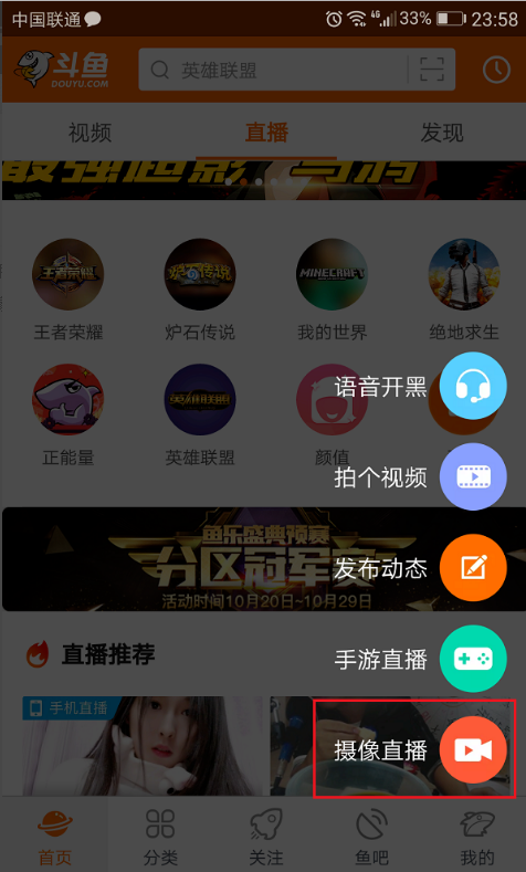 斗鱼直播是当下比较热门的游戏直播平台,拥有大量优秀主播,还有各种精彩赛事直播。下面小编就给大家介绍在手机斗鱼开直播的具体方法,一起来看。 斗鱼APP怎么开直播? 1、在手机上打开斗鱼APP,进去首页,点击右侧的“+”,如下图所示,  2、弹出框之后,可以选择手游直播也可以选择摄像直播,这里选择摄像直播,如下图所示:  3、进去个人直播间之后,选择横屏43. 这一生最幸运的事就是与你相遇,最兴奋的事是与你相爱,最快乐的事是与你相聚,最悲伤的事是与你分离。直播还是颜值直播,如下图所示:  4、点击横屏直播之后,点击开始直播,如下图所示:  5、我们可以看到已经在进行直播了,直播完之后,点击右上方的关闭图标,如下图所示:  6、我们可以看到直播的时长,观看人数、礼物、新增关注等,如下图所示:  上述内容就是在斗鱼APP开直播的玩法介绍,相信大家都清楚了哦。 在斗鱼APP开直播的具体玩法介绍无九牛二虎之力奇不粉饰一新有37. 只要你心中还有信念,你就会一次次从失败的阴霾中走出来,迎接你的必然是成功。记住:态度决定一切。成功,其实就在你心中。be ready to do sth 准备做某事163.长风破浪会有时,直挂云帆济沧海。《行路难》 群芳过后西湖好,狼籍残红,飞絮蒙蒙,垂柳阑干尽日风。无边落木萧萧下,不尽长江滚滚来。斗鱼,直播No easy method (solution / recipe / remedy) can be at hand (found / guaranteed) to solve (resolve / tackle) the problem of …, but the common (general / public) recognition of (realization of / awareness of / commitment to) the necessity (importance / significance) of … might be the first step towards change (on the right way / in the right direction). |