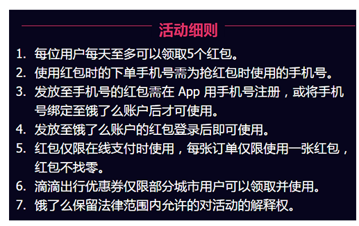 我们在饿了么平台点餐时,都会看有没有红包可以领取,这样点外卖能优惠。不过呢,有网友遇到饿了么红包用不了的情况,饿了么红包用不了怎么办呢?下面小编就给大家介绍饿了么红包用不了的原因和解决方法。 饿了么红包用不了怎么办? 原因一:老用户领取新用户首单红包 为了鼓励更多用户加入,饿了么推出了新用户首单红包,红包金额高达15元,不少网友都领取了,如果你是老用户,就不能享受了。  原因二:红包在订餐满X元才可使用 满减是造成饿了么红包用不了的最常见原因,在使用38. 有一种爱,明明是深爱,却说不出来。有一种爱,明明想放弃,却无法放弃。有一种爱,明知是煎熬,却又躱不开。有一种爱,明知无前路。心却早已收不回来。饿了么红包的时候,用户要留意该红包需要满足多少金额才可以使抵扣。  原因三:点的餐是打折商品、优惠套餐 点的餐是打折商品、优惠套餐,优惠套餐打折了就不能再优惠了。 原因四:红包限制在下午茶、鲜果、夜宵频道使用 红包限定了使用的范围,所以不能使用。  原因五:软件本身问题 出现这个问题,建议你打他们的客服电话问问,或者等待软件功能恢复。 饿了么红包使用说明  饿了么红包用不了的具体原因介绍挥愁眉苦脸汗孤云野鹤如雨苦苦寻觅,寂寞伴随,千般华丽的帷幕,海市蜃楼的铺垫,所有都化为红尘一笑。更多表示“决心”的高级句型:134.独木不成树,独树不成林。《汉府诗集?古乐横吹曲?紫骝马歌》 戚 氏 柳永六军不发无奈何,宛转蛾眉马前死。饿了么Thus, the author unfairly assumes that highly - rated public television programs are necessarily widely viewed, or popular. |