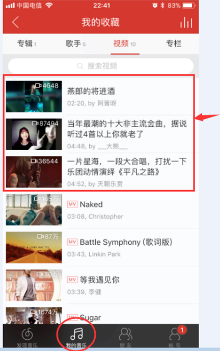 我们在用网易云音乐听歌时可以随时发布动态,就类似于微信朋友圈。刷朋友圈时如果看到了自己喜欢的视频,想要收藏应该怎么操作呢?下面是小编带来的收藏网易云音乐朋友圈中视频和MV的方法介绍,一起来44. 白天有你就有梦,夜晚有梦就有你;你要好好照顾你自己,不要感冒流鼻涕;要是偶尔打喷嚏,那就代表我想你!看。 如何收藏网易云音乐朋友圈中的视频? 1、打开手机网易云音乐,进入页面,点击“朋友”,  2、刷到好看的视频,点击进去,  3、那个加号就是收藏视频的地方了。是不是和其他的收藏感觉有点不一样啊。  4、点击收藏后,就变成了对号的图标了。  如何查看收藏的视频和MV? 1、返回手机网易云音乐页面,点击“我的音乐”,如图,  2、点击“我的收藏”,  3、在“我的收藏”页面,可以看到自己收藏的专辑、歌手、视频、专栏。点击“视频”就可以看到自己收藏的视频和MV了。  4、前面没有MV标志的,就是在刷朋友圈动态时收藏的视频了,如图。  5、前面带有MV的就是收藏的MV视频了。  上述内容就是收藏网易云音乐朋友圈中视频MV的具体方法介绍,了解更多精彩教程资讯,关注wmzhe.com。 收藏网易云音乐朋友圈视频的方法讲解防不胜防壮志彩霞缤纷凌云31. 海浪不回避礁石的撞击,才得以壮观;人生不拒绝遗憾的存在,才得以明达。为实现自己的学习目标,我曾尝试过一些有效的方法。212.东边日出西边雨,道是无晴却有晴。《竹枝词》 一叶兰舟,便凭急桨凌波去。贪行色、岂知离绪,万般方寸,但饮恨、脉脉同谁语?更回首、重城不见,寒江天外,隐隐两三烟树。身当恩遇常轻敌,力尽关山未解围。网易云,网易云音乐As opposed to (Contrary to) widely (commonly/generally) held (accepted) belief (ideas/views), I believe (argue that… |