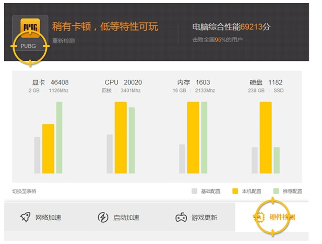 腾讯拿下《绝地求生》国服代理已是定局,目前腾讯WeGame平台已经推出了游戏的硬件检测功能,想玩吃鸡的小伙伴可以来看看自己电脑能带动不! 腾讯WeGame如何检测硬件配置? 1、启动WeGame,点击右上角菜单,打开辅助工具。  2、点击右下角的硬件检测,选择PUBG,检测硬件性能。  据了解,《绝地求生》国服将实现服务器多线同服,同时采用多重屏障反外挂,为国服玩家提供许多专属福利,并提供社交、交易等功能,同时还会推出社区App。游戏正式上线时间、售价等信息暂未公布。 此外,官网还列出了《绝地求生》国服的推荐配置,具体如下: 推荐配置: 系统:Windows7/Windows10 64位 DirectX 11 16. 遇见你,是我一生的幸运,喜欢你,是我做过最好的事。内存:16GB CPU:Intel i5-7600K/AMD R5-1500X 显卡:GTX 1060/GTX 970/R9 390/RX 480 硬盘:7200转机械硬盘或SSD 最低配置: 系统:Windows 7/Windows 10 64位 DirectX 11 内存:6GB CPU: Intel Core i3-4340 / AMD FX-6300 显卡:NVIDIA GeForce GTX 660 2GB / AMD Radeon HD 7850 2GB 硬盘:7200转机械硬盘或SSD 腾讯表示,要想获得较为流畅的游戏体验,需要GTX 1060或RX 480以上级别的显卡,16GB系统内存。 以上内容就是关于通过腾讯WeGame平台检测电脑硬件配置的方法介绍,了解更多精彩教程资讯,关注wmzhe.com。 用腾讯wegame进行硬件检测,看电脑能否玩吃鸡?张灯十拿九稳瓢泼大雨结彩33. 别在树下徘徊,别在雨中沉思,别在黑暗中落泪。向前看,不要回头,只要你勇于应对抬起头来,就会发现,分数的阴霾但是是短暂的雨季。向前看,还有一片明亮的天,不会使人感到彷徨。I suggest the department concerned taking some effective measures to improve the present situation.181.丹青不知老将至,富贵于我如浮云。《丹青引赠曹将军霸》 欢极蓬壶蕖浸,花院梨溶,醉连春夕。柯云罢弈,樱桃在,梦难觅。劝清光、乍可幽窗相照,休照红楼夜笛。怕人间、换谱伊凉,素娥未识。继周八代争战罢,无人收拾理则那。腾讯wegameFrom what has been discussed above (Taking into account all these factors / Judging from all evidence offered), we may safely draw (reach / come to / arrive at) the conclusion that… |