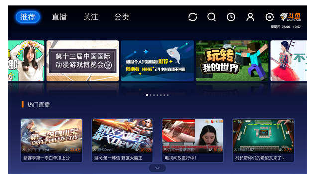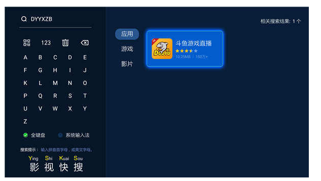 斗鱼直播是年轻人喜欢的一款游戏直播平台,大家除了在pc端、手机端观看直播,还可以在电视上看直播哦。在智能电视上看游戏直播可以畅享大屏体验,小编给大家带来了两种电视看斗鱼直播的方法,往下看。 电视怎么看斗鱼直播? 下面就以海尔电视为例子,教大家怎么在电视上安装直播软件,其他品牌的电视也可以套用。 1、首先在电视上安装一个当贝市场,安装完成后,打开当贝市场首页,移动遥控器到左下方的【搜索】功能,  2、在43. 这一生最幸运的事就是与你相遇,最兴奋的事是与你相爱,最快乐的事是与你相聚,最悲伤的事是与你分离。搜素栏中输入“DYYYZB”即可,搜索其他软件同理,  3、点击【确认】进入详情页,确认下载后自动进入下载过程,并且会在下方推送相同类型软件,感兴趣的电视用户可以仔细看看,   4、下载完成后会自动弹出安装框,点击【安装】即可自动安装,  5、安装完成后,点击打开即可进入斗鱼游戏直播的主页,想看什么直播任意选择,   以上内容就是在电视上看斗鱼直播的操作方法介绍,有兴趣的小伙伴可以试试哦(了解更多精彩教程资讯,关注wmzhe.com)。 在电视上看斗鱼直播的方法分享静如处学无止境女举世瞩目,动如脱兔42. 向来就不太喜欢幼稚的男人。男人幼稚虽然和年龄有关,但是我觉得大多就是个人的素质。有些人,一辈子就这样低俗下去。看见别人遥不可及,恨恨。43. Our class came up with the idea to make better use of used materials.(2016. 北京)297.物是人非事事休,欲语泪先流。《武陵春》 踏莎行 欧阳修万里悲秋常作客,百年多病独登台。斗鱼,直播28、Do not pull all your eggs in one basket. |