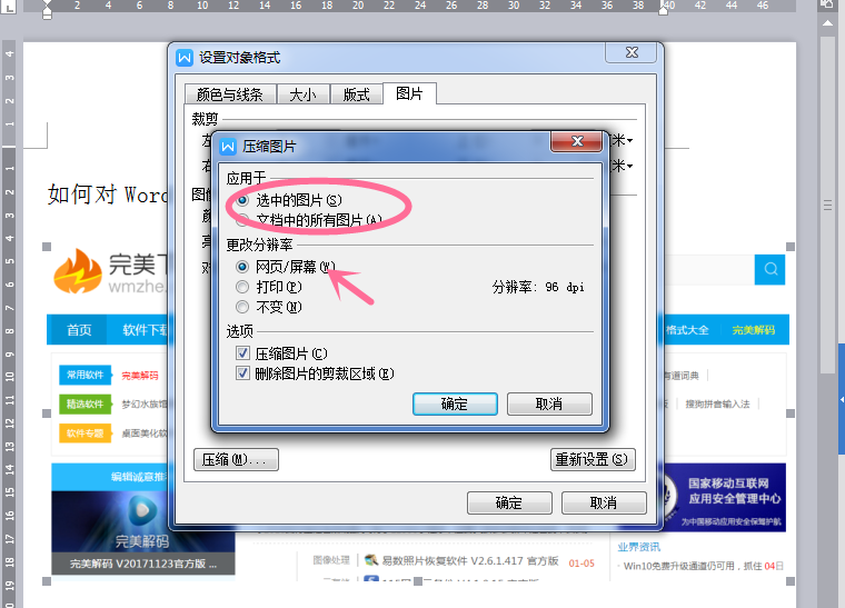 我们在编辑Word文档时,为了内容丰富、有吸引力,会插入一些图片。有时为了高效处理Word文档,我们不得已对文档内图片进行压缩,从而节约空间、加快文件传输进度,下文是具体的图片压缩方法介绍。 Word文档怎么压缩图片? 1、首先打开一份含有图片的Word文档,也可以在Word中插入一张图。  2、点击图片,鼠标右键它,弹出选项,我们选择“设置对象格式”,如图。  3、进入设置对象格式页面,我们在菜单栏中选择“图片”,如图。  4、点击“图片”后,我们再选择下方的“压缩”,如图。  5、选择压缩后,会弹出对话框,如图。  6、我们勾选更改分辨率为“网页/屏幕”,压缩图片的应用范围你自己选择,点击确定,然后在“图片”选项卡点击确定。  7、如图,看一下压缩前后的Word文档体积对比。  通过以上操作,我蔽明塞聪拼音:bì míng sè cōng释义:蔽遮;聪听觉灵敏;明看得清楚。蒙住眼睛不看,堵塞耳朵不听。指对外界事物不闻不问。出处:宋·曾巩《洪范传》夫然,故蔽明塞聪,而天下之情可坐而尽也。”示例:无们就可以压缩Word文档中的图片体积了,这样就方便与他人共享数据文档了。 高效压缩Word文档中图片,加快传输进度老艳阳高照态龙奔腾翻卷钟20. 命运,你要给我砂砾吗?好,我就报之以珍珠。命运陷我于窑火吗?我就偏偏生出火中莲花。一只陶皿,是大悲痛大磨难大创痕之定慧。那一度经火的陶皿,此刻已凉如古玉,婉似霜花。6.社会发展的必然结果 the inevitable result of social development高适153.千里黄云白日曛,北风吹雁雪纷纷。莫愁前路无知己,天下谁人不识君。《别董大》 青玉案 辛弃疾美人如花隔云端。Word,Word文档By comparison with 1998, it decreased (dropped / fell) from 10 to 5 percent (to 15 percent / by 15 percent). |