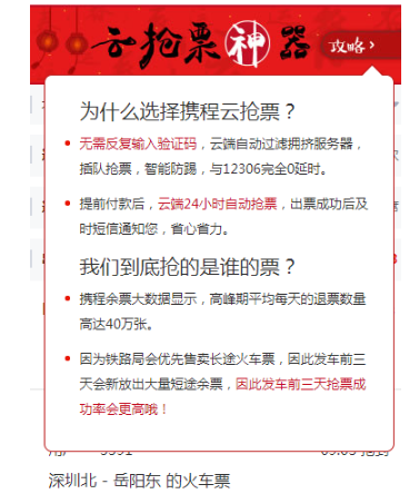 2018春运火车票已经发售了,在异乡的小伙伴们都要做好购买票打算,携程旅行为用户提供了范围广泛的一站式旅行购票服务,那你知道怎么在携程旅行云抢票上抢票吗?现在我们就一起来看看具体的抢票方法吧! 携程旅行云抢票怎么用? 1、首先登录携程官网,或者直接在网页中搜索携程进入官网,  2、然后16. 任何的限制,都是从自己的内心开始的。忘掉失败,不过要牢记失败中的教训。点击上面的火车票,  3、填入火车票的起始点和终点,点击开始搜索,  4、然后我们可以看到很多车次,  5、接着就会看到右边的云抢票神器,然后登陆自己的账号,选择立即抢票就可以了哟,  6、登录自己账号的时候还可以看看云抢票攻略哟! 携程云抢票好用吗?能抢到票吗?振振有错落有致大雨滂沱辞29. 取一枚青苔寄予流年,于月影下,静听远古传来的吟唱,这是生命中从没有体验过的一种精神快感。73.In my opinion, you should come back after you finish you studies abroad.151.黄沙百战穿金甲,不破楼兰终不还。《从军行》 日暮,望高城不见,只见乱山无数。韦郎去也,怎忘得玉箫分付。第一是早早归来,怕红萼无人为主。算空有并刀,难剪离愁千缕。骊宫高处入青云,仙乐风飘处处闻。携程,旅行,抢票We must look (search / all / cry) for an immediate action (method / measure), because the present (current) situation (phenomenon / tendency / state / attitude) of …, if permitted (allowed) to continue (proceed), will surely (certainly) lead to (result in) the end (destruction / heavy cost) of… |