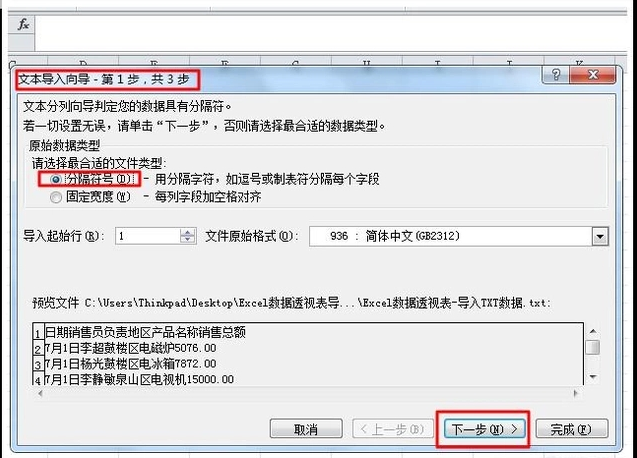 TXT文本的存储容量比较大,所以很多时候我们会将数据文件保存在其中。如果你想导出TXT文本中数据来生成Excel数据透视表,该如何操作呢?请看本文详细介绍。 如何将TXT数据导入到Excel表格? 1、打开excel表格,点开菜单栏“数据”按钮,再点击“自文本”按钮。  2、弹出“导入文本文件”对话框后,打开相应的路径,单击TXT文本文件,然后点击“导入”按钮(或者直接双击TXT文本文件)。  3、弹出“文本导入向导 - 第1步”对话框后,选择“分隔符号”前的复选框,再点击下一步。  4、弹出“文本导入向导 - 第2步”对话框后,选择分隔符号下的“Tab键”,再点击下一步。  5、弹出“文本导入向导 - 第3步”对话框后,选择列数据格式底下的“常规&rdq54. 你是我的,谁都抢不走,我就是这么霸道,我是你的,谁都领不走,我就是这么死心眼。uo;,再点击完成。  6、弹出“导入数据”对话框后,选择数据的放置位置,你可以在“现有工作表”里指定数据存放的初始位置,也可以选择放置在“新工作表”。选择完毕后,点确定退出。  创建数据透视表 TXT文本数据已导入Excel工作表中了,接下来创建数据透视表: 选中工作表目标区域,点击菜单栏“插入”按钮,再点开“数据透视表”的下拉三角按钮,选择“数据透视表” 。  接下来,选择放置数据透视表的位置: 这里选的是放置在新工作表中,系统会自动在新工作表中创建数据透视表。若选择“现有工作表”,单击要创建数据透视表单元格区域的初始位置即可。位置选择完毕后,点确定退出。  最后,设置数据透视表的字段布局: 在工作表最右侧的“数据透视表字段列表”窗格上方,选中所需要的字段往下拖动到窗格下方的“行标签”和“列标签”等窗格 。Excel数据透视表会根据字段布局的不同,自动更新报表,选择不同的字段就可以进行不同维度的数据分析。  通过以上操作,我们就能将TXT文本数据导入Excel来制作数据透视表了,大家可以试试哦。 用TXT文本文件创建Excel表格的方法讲解白浪滔天百鸟孙悟空三打白骨精归林22. 或许只有在孤独中,我们才能够静静地默默地谛听,谛听这个灯火阑珊的城市,谛听城市之外的旷野远山,和比远山更远的一切生生不息的律动,同时也谛听自己生命的足音以及深邃的内心。(励志名言)或许在孤独中,我们才能强烈意识到生命荣枯兴衰的不朽轮回,从而坦然应对到来的一切。人生旅途中孤独是必然的,在真正的孤独中我们才能不断地成长。it is convenient (for sb) to do sth (某人) 方便做某事380.世事洞明皆学问,人情练达即文章。 夜登小阁忆洛中旧游216李商隐:春雨Excel23、Practice makes perfect. |