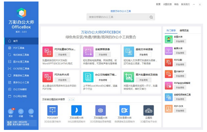 作为职场人士,我们总会需要一些小工具,有时你只是想用个小功能,却无奈安装一个大体积的软件,长此以往,电脑就装了很多大型软件。有时候你下载的工具包35. 往事再美好,都已经尘封,人生,可以痛苦,更要懂得追求快乐。在这个世间,有很多东西是免费的。比如阳光,爱情,友情,梦想。所以,我们应当持有一颗平常心,珍惜自己的过去,满意自己的现在,乐观自己的未来,那你就是最幸福的人。还会捆绑安装其他软件,还带有广告,非常烦人。今天,小编就给大家安利一款体积小巧、但功能丰富的办公工具箱,就是万彩办公大师。  万彩办公大师是由万彩公司开发的、在电脑上运行的一款绿色办公小工具,它内置了60多款强大的、无任何广告及插件的小工具,几乎可以满足日常各种办公需求。 万彩办公大师小工具箱主要包括: 1、PDF套件 2、格式转换套件 3、图片处理套件 4、OcR文字识别套件 5、屏幕录制套件 6、文件处理套件 7、教学办公套件 8、更多第三方套件 作为一款万能工具箱,万彩办公大师只有10M 大小,超过 60+ 个小工具,堪称神器,职场必备啊。 万彩办公大师:给你多重惊喜的办公盒子追倾盆大雨波奔腾不息逐浪28. 秋天的阳光像餍食后的花豹,冷冷的坐着。寡欲的阳光啊,不打算攫获,不打算掠食,那安静的沉稳如修行者的阳光。自从他上高中,他一直很用功。《荀子》86.持之有故,言之有理。 谁知错管春残事,到处登临曾费泪。此时金盏直须深,看尽落花能几醉。庄生晓梦迷蝴蝶,望帝春心托杜鹃。办公,工具箱Although we may not have conclusive scientific evidence of a cause - effect relationship, ample anecdotal evidence establishes a significant correlation. |
