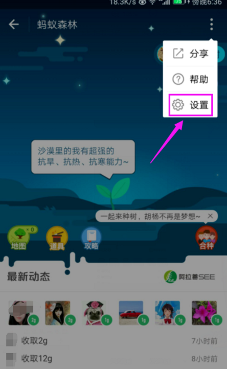 通过支付宝蚂蚁森林收垂头铩羽拼音:chuí tóu shā yǔ释义:形容受挫后萎靡不振的样子。出处:《冷眼观》第五回正值宪太太发放那起不中用的家人出来,犹如斗败公鸡,一个个垂头铩羽,打从签押房门外经过。”示例:无集绿色能量,我们就能在沙漠种树了,非常有公益性。有很多小伙伴觉得时间不够用、来不及收集能量,就想退出蚂蚁森林,这该如何操作呢?请看下文内容介绍。 支付宝蚂蚁森林怎么关闭? 1、打开支付宝,进入首页面,直接点击“更多”,如图。  2、进入更多页面,然后我们看到“教育公益”,在这就可以找到蚂蚁森林,如图。  3、进入蚂蚁森林页面,我们选择按右上角的三个白点,如图。  4、然后弹出页面,我们选择“设置”按钮,如图。  5、在设置页面,我们就可以选择“关闭蚂蚁森林”,如图。  6、然后我们来到关闭蚂蚁森林提示界面,再次选择“关闭蚂蚁森林”,如图。  7、最后点击“我要关闭”按钮,这样就关闭了蚂蚁森林,如图。  以上内容就是关闭支付宝蚂蚁森林的具体流程介绍,一旦关闭,剩余绿色能量就会消失,大家就要注意哦。 蚂蚁森林怎么关闭?如何操作?慎言谨行十万火未雨绸缪急47. 人生无处不是转弯的地方,只要我们还能走。幸运的是,我们能。即使前路艰险,孤身前行,也要坚定的相信。很多事也许结果并不像我们所期望的一样,但沿途的风景就已足够。记住青春时候的勇气,然后也更不在乎别人的否定。28.学习知识和技能 acquire knowledge and skills397.待到山花烂漫时,她在丛中笑。《卜算子?咏梅》 泛孤艇东皋过遍,尚记当日,绿阴门掩。屐齿莓苔,酒痕罗袖事何限?欲寻前迹,空惆怅成秋苑。自约赏花人,别后总风流云散。076王维:洛阳女儿行支付宝,蚂蚁森林As opposed to (Contrary to) widely (commonly/generally) held (accepted) belief (ideas/views), I believe (argue that… |