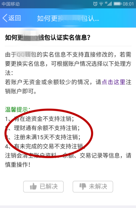 手机QQ中的许多功能需要建立在实名认证的前提下才可以使用,很多小伙伴之前绑定的信息发生变化,想修改实名认证,该如何操作呢?下面是小编整理的修改QQ实名认证信息的方法介绍,一起来看。 QQ如何修改实名认证的信息? 1、打开手机QQ,点击头像,滑动页面,如图,  2、点击QQ钱包杯茗之敬拼音:bēi míng zhī jìng释义:请人饮宴的谦辞。出处:《镜花缘》第十一回吴之和对唐敖、多九公道‘二位大贤由天朝至此,小子谊属地主,意欲略展杯茗之敬,少叙片时,不知可肯枉驾?’”示例:无,进入,然后点击右上的“设置”,  3、找到实名认证,点击进入,  4、修改实名信息要先注销再认证。在最下面可以提示,如图,可以在这里点击先注销。  5、然后点击认证攻略,我们可以看到如何更换QQ钱包认证实名信息,点击进入。  6、我们看到有四种情况不可以注销,如图,  7、如果你满足注销条件,就点按“点击这里”进行注销,  8、进入注销页面,完成注销操作,如图,  9、注销完成后,重新绑定身份认证即可。  以上内容就是关于修改手机QQ实名认证信息的方法介绍,了解更多精彩教程资讯,关注wmzhe.com。 手机QQ实名认证可以注销吗?怎样操作?追波高耸入云逐浪想得荒唐(痴心妄想)10. 爱心是一片照射在冬日的阳光,使贫病交迫的人感到人间的温暖;爱心是一泓出现在沙漠里的泉水,使濒临绝境的人重新看到生活的希望;爱心是一首飘荡在夜空的歌谣,使孤苦无依的人获得心灵的慰藉。on behalf of 代表;express welcome to sb 对某人表示欢迎105.韩信将兵,多多益善。 惊起却回头,有恨无人省。 拣尽寒枝不肯栖,寂寞沙洲冷。野旷天低树,江清月近人。QQ,手机QQAccordingly, this assumption is simply an unproven claim. |