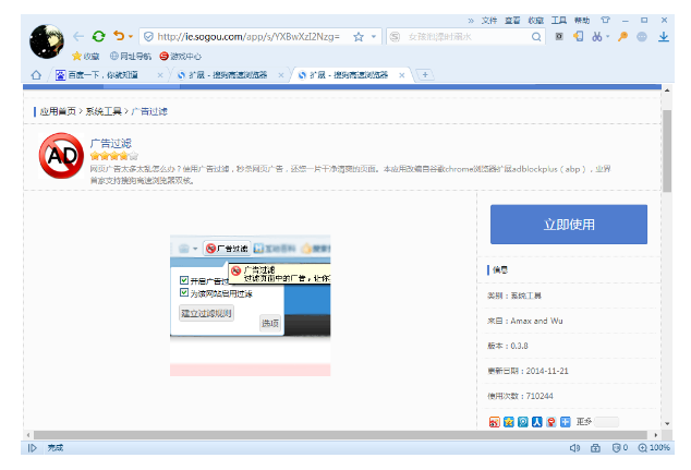 上网时最让人厌烦的就是各种广告,在搜狗浏览器中有很多屏蔽广告的插件,我们只需安装一款就可以屏蔽这些烦人的广告!下面是小编整理的屏蔽搜狗浏览器广告的方法,一起来看。 搜狗浏览器如何屏蔽广告? 1、打开搜狗浏览器,然后打开搜狗浏览器的扩展中心,如图,  2、来到扩展中心,我们在搜索框中搜索“广告过滤”,  3、搜索完毕后就可以看到很多过滤广告的插件了,我们挑选一个自己喜欢的安装就可以了,  4、另外,我们点击下载的广告过滤插件,就可以查看它的使用方法啦! 毁誉不一拼音:huǐ yù bù yī释义:毁誉诋毁和称赞;不一不一样,不一致。有人说好,有人说坏,说法不一。出处:清·名教中人《好逑传》第十七回外臣毁誉不一,俱着各自据实奏闻。”示例:无 安装插件后,我们就可以有效屏蔽搜狗浏览器中的广告啦。 轻松屏蔽搜狗浏览器广告,方法有效班北雁南飞门弄五颜六色斧26. 想来,生命之宴也是如此吧?我对生命中的涓滴每有一分赏悦。上帝总赐下万道流泉。我为其中的某一个音符凝神他总赐下整匹的音乐如素锦。生命的厚礼,原来只赏赐给那些肯于一尝的人。我充分认识到英语对我的未来是多么的重要。朱熹313.即以其人之道,还治其人之身。《中庸集注》 缺月挂疏桐,漏断人初静。 谁见幽人独住来,飘渺孤鸿影。自从弃置便衰朽,世事蹉跎成白首。搜狗,搜狗浏览器,浏览器,插件The argument ignores the factors - such as initiative, creativity, technical skills, and business judgment - that may be more important than the choice of medium in determining success in photography. |