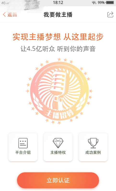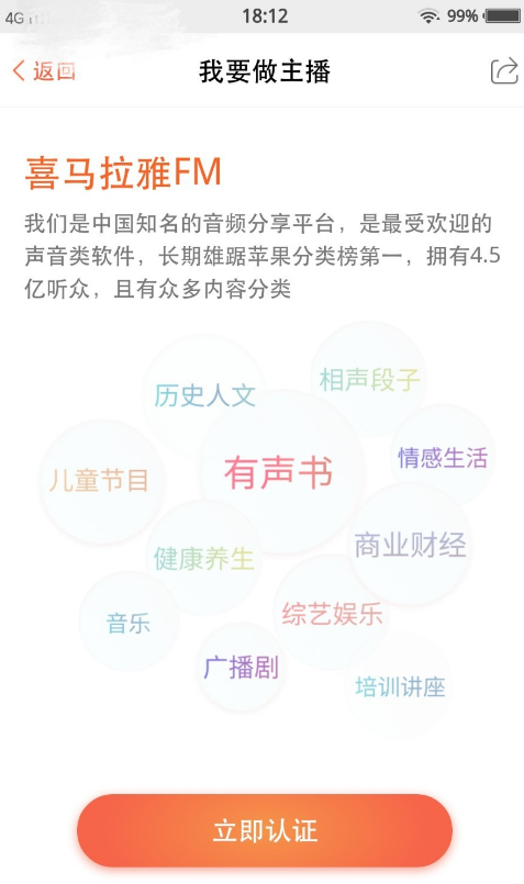 空闲时间听听电台是一种享受,喜马拉雅FM是一款很多人在用的音频电台软件,用户能够随时随地听到自己喜欢的音频节目。如果你想成为喜马拉雅FM中的主播,应该怎么申请呢?下面我们就来看看具体方法。 喜马拉雅FM怎么直播? 1、首先打开喜马拉雅FM电台,登陆账号,有账号的小伙伴直接输入18. 我想去迪拜当乞丐,一天赚47万元就够了。账号密码,没有的可以选择微信、QQ以及微博等多种登陆方式;   2、登陆完成之后需要绑定手机号来完成验证,小编之前验证过了就不演示了,小伙伴们根据提示完成就可以了;  3、登陆之后返回页面,在中间部分有四个小图标,点击“我要直播”的小图标;  4、然后可以选择向下滑动(喜马拉雅FM关于主播的各种介绍),或者直接点击立即认证;    5、根据个人情况选择个人认证、机构认证、名人名企通道完成认证就可以了。  通过以上操作,我们就可以申请在喜马拉雅FM平台开直播啦。 如何申请成为喜马拉雅FM的主播?久旱拐弯抹角手疾眼快逢甘露28. 我在酒里看到我自己,如果孔子是待沽的玉,则我便是那待斟的酒,以一生的时间去酝酿自己的浓度,所等待的只是那一刹的倾注。32. The table-tennis team of our school is admitting new players. (2017.全国)134.独木不成树,独树不成林。《汉府诗集?古乐横吹曲?紫骝马歌》 因度此阕,以纾客怀。孤灯寒照雨,深竹暗浮烟。电台,直播18、Rome was not built in a day. |