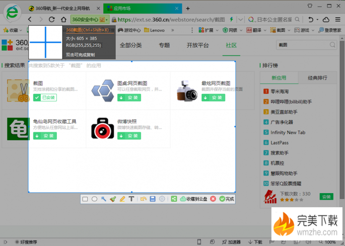 在日常工作中,我们一般会选择一些传统的图像处理软件来完成截图、搜图、下图等常见的图片处理任务,那么有什么方法可以抛开图像处理软件来完成这些任务呢?不用繁琐而功能简单的网页搜索和在线服务,借助于一些专门的图片处理Web轻应用,即可轻松完成图片处理任务。 轻应用哪里找? 以360浏览器为例,在浏览器的工具栏上点击“扩展”按钮,在下拉菜单中单击“扩展中心”一项,打开“360应用市场”页面,在该页面中通过分类浏览或用右上角的搜索框,即可找到自己所需的轻应用(其他浏览器)。  1、搜图——相似图片右键搜 如果对网上看到的一幅图片不满意,想搜索素质更好的相关的类似图片,也不用再到Google图片频道以图搜图,添加“图片搜索”或“谷歌相似图片搜索”的Web轻应用即可搞定。添加轻应用后,在网页图片上点击右键,选择“48. 你的快乐,我独家赞助:你的痛苦,我独家承受;你的脾气,我独家承受:你的一生,我独家陪伴。搜索相似图片”或“Search Google with this image”命令,就能很快搜索出相似图片。  2、看图——换种方式来看图 是不是觉得普通的方式浏览图片太千篇一律?那就换种方式,以3D的模式来看图吧。给浏览器添加名为Image Search by Cooliris的Web轻应用,就可以用3D墙的方式来浏览Google搜索的图片了。这样能获得更好的浏览体验,并能更快捷地找到并保存所需的图片。  3、截图——网页再长也能抓 有的网页很有收藏价值,但由于网页设计采用了防拷贝技术,因此无法直接复制文字或图片。这时,最快捷的方法莫过于将整个网页存成图片。但是网页过长,往往达到屏幕长度的若干倍,即便用专业抓图软件也截取不便。这时,可通过截图Web轻应用来完成。 在360安全浏览器中,已集成一个“截图”轻应用,点击扩展栏上的“截图”按钮,即可看到丰富的截图功能,其中有包括“保存完整网页为图片”(也可用Ctrl+M快捷键来完成网页截取)。如果要截取屏幕上的任意区域位置,用Ctrl+Shift+X快捷键组合来完成。若组合键与其他软件的组合键相冲突,可点击“截图→指定区域截图”菜单项进行截取。该截图工具不仅能完成图片保存,还可以用文字和线条对图片进行涂鸦,进行网络分享、将截图收藏到云盘等。  小提示: 如果扩展栏没有出现截图按钮或自带的截图轻应用丢失,可通过扩展应用市场,用“截图”关键词进行搜索,点击搜索结果中的“截图”进行添加。在弹出的应用说明窗口中点击“安装”按钮,即可将该应用添加到浏览器的扩展栏。 4、下图——灵活下载网页图 除了将网页本身截取为图片之外,有时我们还希望下载网页中的某些图片。借助于“图片助手(ImageAssistant)”Web轻应用,可达到灵活下载网页图片的目的。在要抓取图片的网页中点击图片助手按钮,会自动检测出本页存在的各类图片数量,从“图片类型”中选择要下载的图片类型,指定分辨率大小,单击“下载选中”按钮,即可获得自己想要的图片。   5、修图——不用安装照样用 美图秀秀你一定不陌生吧!不安装能不能用?当然可以!我们可以添加一个Web轻应用按钮,从服务器端运行它即可。添加美图秀秀轻应用图标到浏览器之后,只需点击“美图秀秀网”按钮,即可随时调用服务器版的美图秀秀了,一切更加简单(图7)。具体操作类似桌面版。  巧用360浏览器,即可完成截图、搜图、下图等图片处理任务层出不螳螂捕蝉,黄雀在后穷鹤立鸡群24. 倘若希望在金色的秋天收获果实,那么在寒意侵人的早春,就该卷起裤腿,去不懈地拓荒播种耕耘,直到收获的那一天。9. I sincerely hope you could join us. (2017.全国)266.不知何处吹芦管,一夜征人尽望乡。李益《夜上受降城闻笛》 念奴娇 姜夔若非巾柴车,应是钓秋水。360浏览器Many people would claim that… |