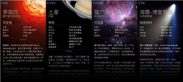 | 内容 | 宇宙可能是人类永远无法解锁的秘密,也是很多人一辈子都接触不到的领域,只有在书中了解。各种天文望远镜更是昂贵,如何让我们普通人能够离宇宙近一点呢?以下软件你可能需要。 Star Walk 2——连接你和星空 喜欢星星的你,知道天空中哪个星星连起来是什么星座么,不知道的话,拿起手机,打开Star Walk将手机对准天上的星空,然后Star Walk就会自动通过方位角以及其他地理信息,确定你面前星座的名称。用户还可以通过AR技术以不同角度观察星座。对于星座点击信息按钮还能查看全中文的星座介绍信息。 Star Walk还能向用户发送重要的天文活动如流星雨等。此外star walk 2还提供了星座图、星云图、月相等的信息。Star Walk 2分为免费版和收费版,免费版的每次点击都会触发5秒后可关闭的广告。star walk可是最知名的天文APP哦。 ![]() Sky Guide AR——AR技术观星 运行Sky Guide AR,展现在用户面前的就是一片璀璨的星空,应用会根据用户的设备方向来自动调整所对的星空,AR模式下,举起 iPhone 或 iPad,Sky Guide 即可自动匹配用户摄像头所指向的星星,看到一颗不认识的星星或者卫星?把手机放在星空上找到它吧!然后点击星星旁出现的&l29. 你身上的味道最好闻,你笑起来的样子最好看,你陪着我的时候,我从没羡慕过任何人,很想陪你走完这一生。dquo;i“图标,便可以看到它的详细信息了,非常方便。 无论是寻找处女座、仙女座星系还是下一场大型流星雨,Sky Guide 都能提供各种信息和丰富图片,以充分满足用户的好奇心。在Sky Guide中,用户还可以控制远航,回顾过去或追踪未来,查看变化过程,甚至可以查看你出生时的星空,还能亲眼见证历史上最著名的彗星。(收费应用) ![]() 仰望星图——谷歌星空(Google Sky Map) Google Sky Map(谷歌星空)是Google推出的一款星空观测应用软件,它如同一个微型的天文望远镜,带你仰望星空,探寻宇宙的神秘之处。目前Google Sky Map(谷歌星空)可查看各种天体,包括星体、星座、星系、行星和月球,允许用户自由设定显示哪些天体。Google Sky Map 完全依赖手机内建的全球卫星定位系统(GPS)及加速器,精确地利用你的所在位置,包括你所面对的方向、手机倾向何方等等,就可向你显示你当前所在位置的星空图,而且星空图会跟着你的方向移动。 Google星空地图可以显示恒星、星座、经纬以及其他一些星体等等,所显示的天体会标注名称。利用Google星空,可以学到很多天文相关的知识,起码用来记星图是没有什么问题的。 ![]() 权威之作——NASA 既然要了解宇宙相关的知识,怎么少得了美国国家航空航天局NASA呢,这里有NASA官方推出的手机应用,NASA可以查看NASA拍摄的宇宙图片以及视频,甚至还有直播,当然天文相关的新闻资讯也是第一时间在这里能找到。同时,App还提供了NASA太空任务的最新信息,可以播报火箭、卫星的发射时间和信息,而太空站的种种消息也可以在应用中查看。如果你想要第一手的太空探索资讯,恐怕这是最适合你的手机应用了。只是它是全英文版的。 ![]() 追踪空间站——satellite tracker(卫星追踪器) 空中移动的那个最亮的星星,那可能是人造卫星。国际空间站什么时候会飞到我的观察位置呢?satellite tracker(卫星追踪器)可以提供国际空间站及可见卫星经过的预测,提醒用户多长时间后国家空间站将开始经过你所在的位置,用户可用该应用追踪空间站及查看星星位置。 ![]() 个人天文馆——星空 “星空”是一款强大的、使用增强现实技术的个人天文馆。星空使用增强现实技术,它的Grand Orrery功能让用户可以将太阳系展现在眼前!借助增强现实走遍整个太阳系,用户可以“走”近行星,观察内部细节,查看其卫星和周边的人造卫星。用户可以身临其境的傲游在太空进行探索,更可登陆行星,从火星甚至木星的卫星欣赏太空!“。在星空中,用户可以将人造卫星或星星星座等天体加入收藏,以便它们达到用户可观察位置时进行提醒。星空也不是免费的,部分高级功能需要付费解锁。 ![]() 对天文感兴趣的用户可以试试以上软件,相信会打开你的新世界的。 无需高端仪器,这些天文软件带你领略天文魅力光芒万丈东倒西枯木逢春歪25. 爱心是冬日的一片阳光,使用饥寒交迫的人感受到人间的温暖;爱心是沙漠中的一泓清泉,使用权濒临绝境的人重新看到生活的希望;爱心是洒在久旱大地上的一场甘霖,使孤苦无依的人即刻获得心灵的慰藉。我们班的同学提出了这一想法,以更好利用废旧材料。303.月子弯弯照九州,几家欢乐几家愁。《竹枝歌》 苔径追忆曾游,念谁伴秋千,彩绳芳柱。犀帘黛卷,凤枕云孤,应也几番凝伫。怎得伊来,花雾绕、小堂深处。留住,直到老不教归去。去来江口守空船,绕船月明江水寒。天文软件70、You cannot have your cake and eat it. |