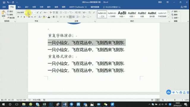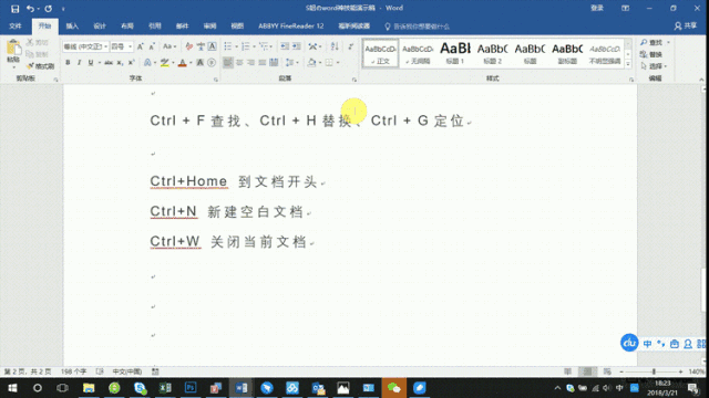 Word软件大家都熟悉,熟练掌握一些操作技巧对于职场人员来说绝对有用,下面是小伙伴整理的一些Word神技能,走过路过不要错过,分分钟提高你的工作效率。 重复输入快捷键F4 编辑Wrod文档时,F4快捷键可以帮助我们“重复上一步操作”,对重复性的编辑、排版、20. 机器人是怎么发明出来的?手机为什么可以看这么多视频,人家是怎么放上去的?人们是怎么想出来飞机的?又是怎么造出来的?为什么他们那么聪明,能发明这么多好东西?我长大了也要发明好多东西,当一个发明家。插入等工作有奇效! 比如:重复输入内容 直接按住F4一下,就会直接重复上一步输入的内容,比如打出“S姐是小仙女”,然后按F4,就会重复输入,  一直按F4会一直重复输入,需要注意的是,它只会重复上一步的操作,如果是打字输入的话,只会重复你一次性打完的几个字。 比如:重复插入表格、图片、文件 我们添加完表格后,觉得不够,直接按F4,就能快速添加表格,  插入图片后,按F4,会重复弹出插图的选项,  插入形状后,按 F4,会重复插入形状,  比如:重复排版参数 把一段文字的加粗或标亮颜色,如果第二段也需要,我就会选中文字,按F4快捷键,刚才的排版设置就会复制到这一段,  掌握F4快捷键的这几个小功能,在我们需要做重复工作的时候能节省超多时间哒。 Ctrl的超神操作 在Word文档中,Ctrl 有最风骚的走位,最多的CP组合,最超神的操作, 最常用: Ctrl+C复制、Ctrl+V粘贴、Ctrl+X剪切 Ctrl+S保存、Ctrl+Z撤消、Ctrl+A全选 进阶玩法: Ctrl+B加粗、Ctrl+I斜体、Ctrl+U下划线  Ctrl+L左对齐、Ctrl+R右对齐、Ctrl+E 居中  Ctrl+F查找、Ctrl+H替换、Ctrl+G定位  大神玩法: Ctrl+Home 到文档开头 Ctrl+N 新建空白文档 Ctrl+W 关闭当前文档  被忽略的格式刷 正常大家用格式刷的时候,都是复制一段文字,点格式刷,然后再去选中需要同化的那一段,但如果是想批量修改好几段格式,这样操作就太浪费时间。 正确操作: 双击格式刷,就可以获取重复使用技能,哪里要改刷哪里,排版从此更容易!  掌握以上操作技巧,可以帮助我们更好使用Word软件,欢迎大家补充分享。 用Word办公有这些神操作,可别忽略了!呆若木宁为鸡首,无鸦雀无声为牛后鸡16. 爱情没了,生活一样在继续。爱是种责任,如果你真的爱,请不要轻易说放弃,那不止会伤害别人,同样也会伤害你自己。对未来的承诺,如果你没有把握实现它,那么,请你也不要给我任何承诺,因为,我会当真。conduct activities 开展活动;a variety / varieties of 各式各样的330.沾衣欲湿杏花雨,吹面不寒杨柳风。释志南《绝句》 木兰花 晏几道293杜牧:遣怀Word,快捷键It is the belief in a brighter future that gives us optimism. |