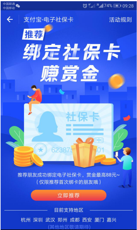 虽说支付宝最近是处处受敌,但依然不影响广大用户对它的支持。现在支付宝又发钱了,推出了一项福利活动,推荐用户绑定社保卡就能领赏金,快来看看。 1、打开手机支付宝,点击右上角的杯水粒粟拼音:bēi shuǐ lì sù释义:一杯水,一粒粟。指极少量的饮食。出处:宋·洪迈《夷坚丙志·张拱遇仙》虽逾旬涉月,杯水粒粟无所须。喜饮酒,好作诗,行年六十,而颜色如壮者。”示例:无“卡包”。  2、打开之后,进入卡包页面,找到卡选项,点开它。  3、点开之后,可以看到<深圳社会保障卡>,下面写着“限时推荐领赏金”,我们再点开。  很多小伙伴反映说,在这一步没有看到自己的社保卡,那是因为你还没有绑定社保卡。 4、再点开之后就出来了“推荐绑定社保卡赚赏金”,我们点击下面的“立即推荐”就可以。  5、我们可以选择一种方式推荐给好友了,如图。  6、小编是推荐给支付宝好友,对方只要点开我的链接,选择绑定自己的社保卡,双方都将得到支付宝发给的赏金。  7、对方绑定之后,我得到2.8元,直接存到余额。  8、对方也得到了1.2元奖励,如图。  支付宝的这一赏金福利目前只支持杭州、深圳、武汉、郑州、成都、西安、厦门、嘉兴城市,其他地方还要再等一段时间了。 支付宝这一福利不套路,完成即可拿赏金!光坐井观天洪水猛兽芒万丈34. 昏暗的台灯下,我凝视着这一杯茶,沸水一次又一次的冲击,让我感到了茶的清香。那苦涩中略微含着的一点甘甜,也被我贪婪的嘴给霸占了,眼的朦胧,勾勒出朦胧的记忆,可记忆却已不再朦胧。我们将和那里的老人一起包饺子、做蛋糕。187.读书破万卷,下笔如有神。《奉赠韦左丞二十二韵》 苔枝缀玉,有翠禽小小,枝上同宿。客里相逢,篱角黄昏,无言自倚修竹。172祖咏:望蓟门支付宝Experience alone is far from being enough to guarantee minimized processing costs. |