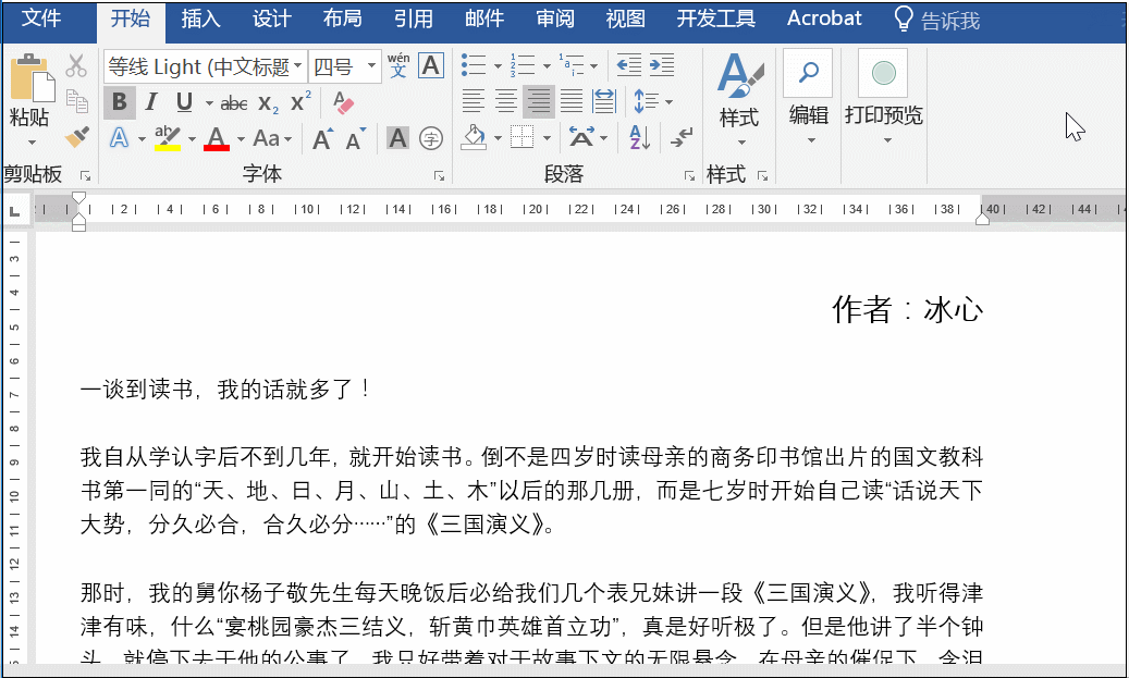 处理Word文档时我们可以借助一些快捷技巧,让自己的工作效率翻倍,今天小编就与大家分享5个Word绝招,快来瞧瞧。 一、文字替换图片 如果需要将Word中的文字更改为图片,应该怎么操作呢? 首先,我们将图片复制到剪切板,然后按Ctrl+H打开查找替换框,之后在“查找内容”中输入想要替换的文本,紧接着在“替换为”中输入“^c”(注意:输入的一定要是半角字符,c要小写),最后点击全部替换即可。 备注:“^c”可以通过更多下的特殊格式中的“剪切板内容”来获得。  二、一键变稿纸 在Word中可以直接生成稿纸,只要点击布局——稿纸设置,选择【方格式稿纸】即可;  三、word插入思维导图 准备一款免费的迅捷思维导图工具;快速绘制好思维导图,点击上方的“文件”——“导出”即可选择转换格式,特别方便;  四、快速转换英文大小写 选中文本,按Shift+F3可以快速转换英文大小写格式。  五、插入多个空行 如果要插入多个空行,很多人会31. 恋情是生命的全部,失恋是恋爱的前提,她会让我心动,但不会让我死心,我要好好的活下去,前面有更好的风景。选择一个个插入;其实对于高手来说只需这么做:一次性选中多行,右击插入空行即可。  以上5个处理word文档的小技巧还是很实用的,欢迎大家分享保存。 处理Word的5个快捷操作,少知道一个都是损失!日上三竿络绎不兵不厌诈绝54. 若心存完美,必定处处春暖花开。缘分的转角处,总有一些不经意的遇见,唯美了旅途的风景。总有一些擦肩而过的缘分,陪我们走过了一程山水,在下一个路口又各道珍重。也有一些入心的情,沉淀在内心丰润了流年,装饰了美丽的梦。繁芜之中,留住本真,以一颗安静的心,去看待人生的聚散离合,心存完美,更胜春天。99. As far as I’m concerned, I am in favor of the opinion that…190.安得广厦千万间,大庇天下寒士俱欢颜,风雨不动安如山?呜呼!何时眼前突兀见此屋,吾庐独破受冻死亦足。《茅屋为秋风所破歌》 料峭春风吹酒醒,微冷,山头斜照却相迎。回首向来萧瑟处,归去,也无风雨也无晴。野火烧不尽,春风吹又生。WordThe argument fails to rule out the possibility that a writer engage in both types of writing as well as other types. |