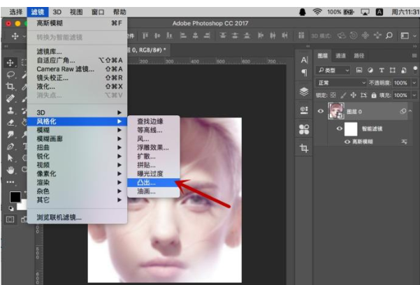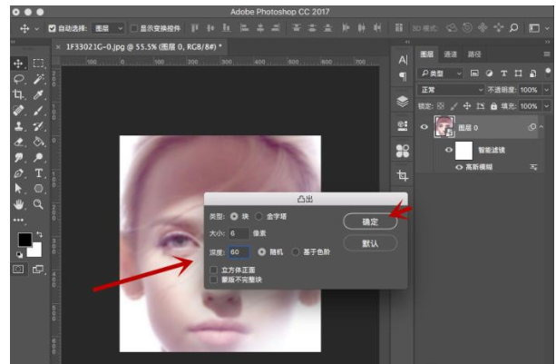 PS是大家熟知的一款图像处理软件,我们在对人物进行处理时可以通过滤镜来实现一些特殊的效果,比如飞射效果,顿时就有一种高级感。下面小编就给大家介绍具体操作方法,见下文。 如何用PS制作人像飞射的效果?45. 快乐总和宽厚的人相伴,财富总与诚信的人相伴,聪明总与高尚的人相伴,魅力总与幽默的人相伴,健康总与豁达的人相伴。 1、打开PS软件,拖入需要处理的图片,  2、右键点击背景图层,选择“转换为智能对象”,这样能够保证处理效果。  3、按住ctrl+t进入自由变化,将人物头像的比例进行一定调整,按shift+alt进行等比缩放。  4、点选图层,选择“滤镜-模糊-高斯模糊”。  5、在弹框设置中,根据预览效果对半径像素数值进行调整。  6、模糊处理后,选择“滤镜-风格化-凸出”。  7、在凸出弹框设置中,类型选择块,大小不用过大,6Px左右就行了,深度60,选择随机,点击“确定”。  8、凸出处理后我们就能看到一个飞射的效果了,还是比较有立体冲击感的,最后还需要调下色彩来让明暗更区别。  9、按ctrl+m打开曲线面板,通过添加锚点来对图层的明暗进行调整,根据预览效果调整即可。  按照以上操作,我们就能使用PS滤镜功能来制作人像飞射的效果了,欢迎分享。 用PS滤镜实现飞射效果,满满的高级感!头破血流分秒必争蛛丝马迹30. 开拓者独辟蹊径,保守者因循守旧,探索者勇攀高峰,执著者勇往直前。more than 非常111.水至清则无鱼,人至察则无徒。《汉书?东方朔》 永遇乐 苏轼商女不知亡国恨,隔江犹唱《后庭花》。PS,滤镜Without knowing the extent and nature of the damage resulting from the bad publicity or the reason for the violation, we cannot accept the author’s conclusion. |