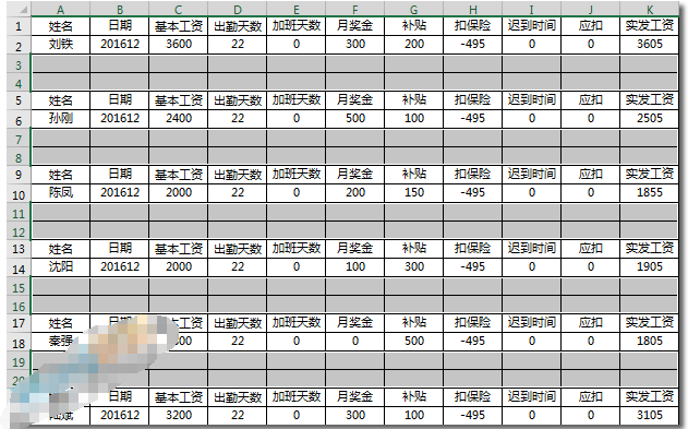 一些公司发工资会像员工发放工资条,上面记录了你这个月的出勤情况,奖金什么的,这些工作会交给财务来做,那么用excel如何又快又好的制作工资条呢? 准备工资表 步骤一、首先你得有一份工资表或者是考勤表,然后排好数据,如下图所示。(注:不要把“工资表”和“工资条”混为一谈)  创建工资条 步骤一、将工资表表头部分复制到另一张excel空白表格中,或者复制到Sheet2中。  步骤二、然后将刚才复制过来的表头选中,向下填充序列,也就是复制多份,具体要看你的人名有多少就拉多少行,我这里有12个人,所以是12行!  步骤三、复制工资表中剩下所有人工资情况,粘贴到刚才创建表格中。  创建辅助列 步骤一、先将所有表头部分最右边一列序列填充1、2、3……12。  步骤二、同样将所有姓名工资情况右边也给上辅助数据1、2、3……12序列填充。  步骤三、再在下面的空白行中加上辅助数据1、2、3……12序列填充。  步骤四、重复上面方法,再在下面的空白行中加上辅助数据1、2、3……12序列填充。也毁风败俗拼音:huǐ fēng bài sú释义:败坏良好的风俗。同伤风败俗”。出处:《晋书·刘毅传》毁风败俗,无益于化;古今之失,莫大于此。”示例:无许你还不理解我为什么要拉出这么多的空白行序列出来,其实这个是我们做工资表留白的地方,等下你就知道拉!  排序数据 步骤一、检查一下辅助列,表头部分占据12行,姓名工资数据部分占据12行,空白行12行*2。完毕后,我们将光标定位到任意一个辅助单元格中。  步骤二、点击【数据】选项卡,在【排序和筛选】中点击【升序】按钮。  步骤三、删除辅助列,此时,你就可以看到我留那么多空白行的用意了,工资条就这样排序好了。  美化工资条 步骤一、选中所有的数据,进入【开始】-【字体】-【边框】-【所有框线】。给数据加上边框线。  步骤二、按住键盘上的Ctrl键,依次选中所有的空白行,不要选择有数据的行哟,切记。  步骤三、选中后,【右键】-【设置单元格格式】,在弹出的设置单元格格式窗口中,点击进入【边框】选项,将表格内外竖线取消掉,将表格中间的横线用虚线代替,点击确定后就大功告成了!  步骤四、中间的虚线是为了方便,我们打印出来后的裁剪,看一下我最终裁剪好的效果图吧!是不是非常的简单呢!  至此,工资条就做好了,这可是财务必备的技能哦,不会的学起来。 excel如何快速制作工资条?财务必学技能之一老态肝胆相照龙窗明几静钟42. 向来就不太喜欢幼稚的男人。男人幼稚虽然和年龄有关,但是我觉得大多就是个人的素质。有些人,一辈子就这样低俗下去。看见别人遥不可及,恨恨。it is an honour to do sth 很荣幸做某事;share with 与……分享罗贯中《三国演义》355.滚滚长江东逝水,浪花淘尽英雄。是非成败转头空。青山依旧在,几度夕阳红。(卷首语) 浣溪沙 秦观遥知兄弟登高处,遍插茱萸少一人。excel,工资条制作The advantages of B outweigh any benefit we gained from (carry more weight than those of / are much greater than) A. |