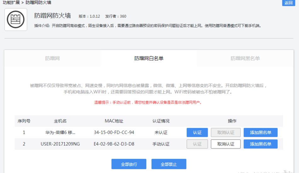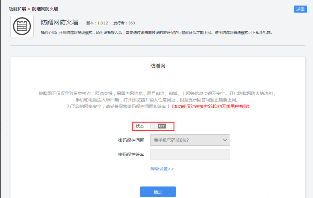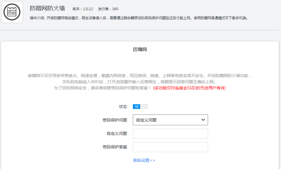 路由器已经进入了千家万户,开启360安全路由的防蹭网防火墙功能之后,我们需要输入设定的问题答案后才可以正常上网!下面就给大家介绍设置360安全路由防蹭网功能的方法,请看教程。 360安全路由器如何设置防蹭网防火墙?34. 失恋了,好似上帝再给你一次重新选择的机会,让你看清对方,看清自己。让你知道自己真正想要的是什么。 在浏览器地址栏中输入默认地址:192.168.0.1或者通用地址,进入到360路由器的后台管理页面,并登录,  进入到后台管理页面后,在顶部点击功能扩展,可以在快捷工具中看到防蹭网防火墙功能图标,   点击进入到防蹭网防火墙,默认这个功能为关闭状态,把状态切换到开启,  开启动能后,就能设置问题了,还可以自定设置自己的问题,这里以自定义设置为例,   设置完成后,我们可以看到后台的管理页面,路由器会自动记录设备的名称和MAC,未认证的设备不进行联网,  设置完成后,在电脑没进行认证的时,浏览网站会自动跳到认证页,需要输入密码保护答案才能上网,  360安全路由的防蹭网功能在哪?能用吗?高孤云野鹤山瘦骨嶙峋深涧4. 如果十分是完美,那么九分才是最值得珍惜目前我们已经开展了各种各样的英语学习活动。191.两个黄鹂鸣翠柳,一行白鹭上青天。窗含西岭千秋雪,门泊东吴万里船。《绝句》 箭径酸风射眼,腻水染花腥。时靸双鸳响,廊叶秋声。183杜甫:客至路由器,360,防火墙,蹭网8.Experience is the mother of wisdom. 实践出真知。 |