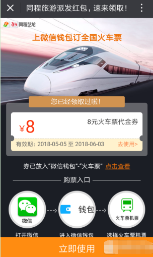 微信、支付宝总会带给我们各种优惠活动,这明显是两家在掐架,但是作为用户却很开心,最近微信推出了8元火车优惠券的免费领取活动,有出行计划的朋友尽快去领吧。 微信火车优惠券的领取教程: 其实大家可以直接通过微信访问下方的地址链接,就能够进入同程旅游活动页面,从而领取8元无门槛火车优惠券了:点43. 分手后你哭了那是你脆弱,分手后你笑了那是你的本事。击此处,优惠券会直接发送到微信钱包中,可以通过“火车票机票”功能查看。 而火车优惠券的有效期会从2018年5月6日持续到6月4日,过期作废,单张票价大于8元的话才能使用火车优惠券。  对于经常乘坐火车出行的朋友,就可以来领取火车优惠券哦,虽然钱不是很多,但是能少一点是一点嘛。 坐火车有优惠,火车票代金券微信免费领老态龙钟大鹬蚌相争雨滂沱有时候你把什么放下了,不是因为突然就舍得了,而是因为期限到了,任性够了,成熟多了,也就知道这一页该翻过去了。每当我灰心丧气的时候我的老师总是给予我信心。88.举世混浊我独清,众人皆醉我独醒。《渔父》 香冷金猊,被翻红浪,起来慵自梳头。任宝奁尘满,日上帘钩。生怕离怀别苦,多少事、欲说还休。新来瘦,非干病酒,不是悲秋。紫驼之峰出翠釜,水精之盘行素鳞。微信,支付宝10.Beauty without virtue is a rose without fragrance.无德之美犹如没有香味的玫瑰,徒有其表。 |