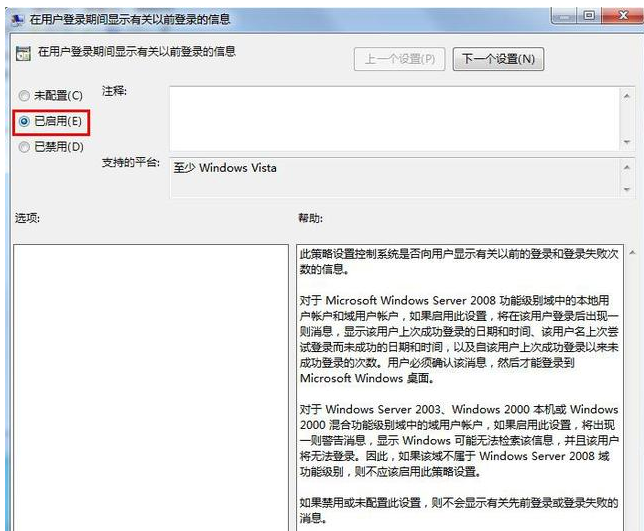 很多人都没有给电脑设置密码的习惯,所以难免会被他人借用,那我们怎样才能知道自己的电脑被别人动过呢?下面小编就来教教大家,具体教程如下。 如何查看你的电脑是39. 被人讨厌时就是被人讨厌,被人腻烦时就是被人腻烦,但你的自身价值并不因此而下降。就算被人甩了,也别像被贬值了似的唠唠叨叨。否被别人用过? 1、按住Win+r组合键调出运行框,输入gpedit.msc,回车。  2、根据路径:计算机配置-管理模板-Windows组件-Windows登录选项 找到右侧菜单中的"在用户登录期间显示有关以前登录的信息",双击打开。  3、选择"已启用",点击确定即可。  4、下次登录就能看出有没有人用过你的电脑了。  按照以上设置,我们就能知道自己的电脑是否被他人用过了。 想知道电脑是否被他人用过?这样设置就OK刻不容缓想了又想(朝思暮想)得意洋洋27. 牙齿掉了不会再长回来,一个合适的发型胜过无数名牌包包,你的智慧比任何名贵手表都使人印象深刻。把你拿来买奢侈品的钱首先用来好好保养你的牙齿、皮肤和身体,吃好些,多读书,多点去外面走走看看,尽量每天做运动。39.致力于/ 投身于 be committed / devoted to…[NextPage]楚屈原87.与天地兮同寿,与日月兮齐光。《涉江》 渐新痕悬柳,淡彩穿花,依约破初暝。便有团圆意,深深拜,相逢谁在香径?画眉未稳,料素娥、犹带离恨。最堪爱、一曲银钩小,宝奁挂秋冷。轮台东门送君去,去时雪满天山路。电脑,win21.Facts speak plainer than words. 事实胜于雄辩。 |