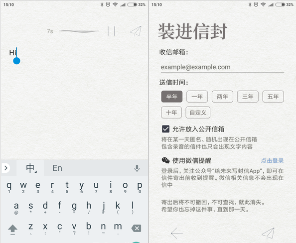 现在很多年轻人还是很文艺的,以前流行的储存记忆的方毁车杀马拼音:huǐ chē shā mǎ释义:废弃车马。喻归隐意志坚决。出处:宋·陆游《谢曾侍郎启》毁车杀马,逝从此以径归;卖剑买牛,分余生之永已。”宋·陆九渊《与陈倅书》元晦虽有毁车杀马之说,然势恐不容不一出也。”示例:无法就是写信放进时间胶囊里,然后埋到地里去。现在,我们不用这么复杂,你只管下载个“给未来写封信”APP,然后写下你要说的话,然后再指定的时间,信件就会出现在你手机上了。 给未来写封信App的功能就如其名字一样,界面也是相当的文艺,背景所用的照片风格清新,应该颇符合文青的口味。难得可贵的是,它还非常的干净,是一款后台和权限都很有节操的安卓App。开启App后,可以看到“公开信箱”和“撰写我的信件”,没错,你在未来的自己写信的时候,也是可以把信发到公开信箱的。在公开信息当中,你可以看到来自天南地北的寄给未来的信,翻阅颇有一番别样情趣。  给未来写封信App主界面,很有氛围,可以看他人公开的信 给未来写封信App写信的界面可以看得出也是经过精心设计的,仿信纸的界面给App增添了不少实感。写信支持语音信息和文字信息,你可以录一段音频、写一段文字给未来的自己。接着,你就可以填写邮箱,把信件投递出去了,这封信会根据你选择的时间,在半年后、一年后乃至十年后,发到你的邮箱当中。如果你在App中登录了微信,收信日到了还能够利用微信来自动提醒,免得错过信件。  写信的界面,可以选择发布时间,其实就是把信箱的定期发信做到了本地  你会期待未来收到今天写的信吗? 谁都不知道未来会怎样,收到几年前自己给自己写的信,再回味那时的生活,还是挺有意思的。 给未来写封信,符合文青口味的创意app应定时炸弹弹见礼忘义尽粮绝接不暇春天有约,今世有缘,这样一种缘分,是一场传奇,不轰轰烈烈,却馨香而真挚。流年静好,春光亦暖,谁在谁的心上投下了柔软的话语?爱在相聚时,快乐幸福蔓延至心海,只觉得时光是那样短暂,爱在别离时,无限眷恋,黑夜又显得那样漫长,让心焦急地等待。11. China is becoming more and more prosperous because of the reform and “opening up” policy.214.山不在高,有仙则名;水不在深,有龙则灵。《陋室铭》 书咄咄,且休休,一丘一壑也风流。不知筋力衰多少,但觉新来懒上楼。今年欢笑复明年,秋月春风等闲度。写信It is possible that the sales trend in a particular location is not representative of sales in other regions. |
