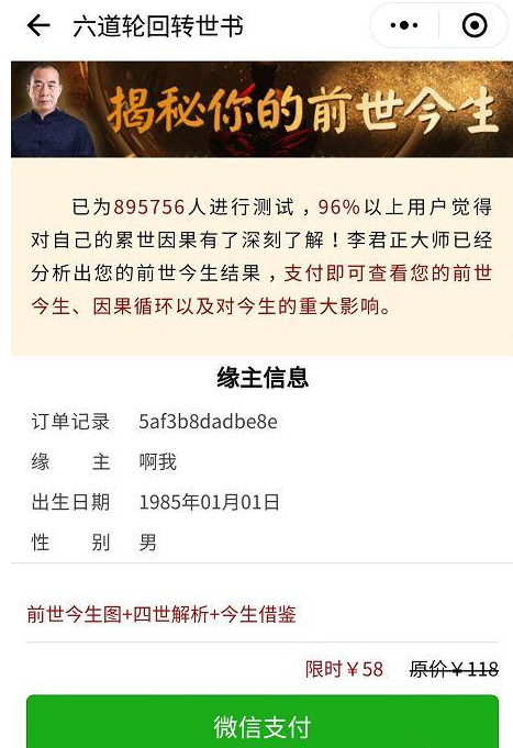 随着各种游戏小程序的走红,微信小程序又焕发生机了,小编每天刷微信都能看到好友转发的游戏链接。现在很多七大姑八大姨们也开始用微信小程序,这本不是什么坏事,但是她们很容易被这些小程序忽悠,如下。  这类打着“礼佛”“祈福”名号的小程序,外观上像是朋友圈常见的性格测试类小游戏,内里却一点也不简单。小编体验发现,这些小程序简直就是圈钱工具。 在微信小程序上搜索“祈福”等字眼,蹦出来了诸多个页面相似的产品。 点击一款名为“六道祈福”的小程序,系统提示第一步要恭请神明,第二步香炉上香,第三步点祈福灯,所上香火价格不等,其中松子圣水杯售价9.8元,点击该杯出现供奉提示,其实就是个充值页面,系统甚至会提示了你目前所有的余额。  而祈福灯花样更是多达17种,招财灯、事业灯,甚至还有追忆灯(佩服运营者的脑洞),选中灯种后也会跳出供奉提示,点击确认后依然是要你充钱,30天=30元,90天=90元,180天=180元...... 这还没完,供奉桌上摆着很多小编叫不出来的法器,无一例外,想要使用就得花钱,如下图所示,  还有一些祈福小程序则纯碎是给微商打广告,点击名为“每日拜佛祈福”的小程序,页面上方诱导关注“每天许愿祈福”微信号;而在“每日许愿祈福”小程序上许下心愿后,页面上方会出现十二生肖本命佛广告位,上面写着“助力愿望实现”等字样,点击便进入另一个名为“合家购”的小程序购物平台,从页面上可以看到,这款号称“星云法师开光的冰种黑曜石本命佛八大守护神吊坠水晶项链”售价188元,销量为97。  谁会这么傻,在这上面花钱呢?事实远超出你的想象。 为了便于让用户搜索到自己的小程序,这些开发商可谓丧心病狂。某一款名为”六道轮回“的号称可以测试前世今生的产品,竟然开发了从“六道轮回A”到“六道轮回N”多种序列的产品。  该款产品58元测试费价格不菲,但已有不少人买单。支付页面上赫然显示,“已为895756人进行测试,96%以上用户觉得对自己的累世因果有了深刻了解。”  祈福小程序是开放性的,任何人都可能成为它的客户,老年人辨别能力不足,更容易上当受骗。 31. 恋情是生命的全部,失恋是恋爱的前提,她会让我心动,但不会让我死心,我要好好的活下去,前面有更好的风景。 注意这些小程序,一不留神就被会圈钱!设大材小用人声鼎沸施齐全25. 人们心目中的神明,也无非是由于其“昔在、今在、恒在”,以及“无所不在”的特质。我厌倦了日复一日地做一些例行公事。94.城门失火,殃及池鱼。齐?杜弼《檄梁文》 肥水东流无尽期,当初不合种相思。梦中未比丹青见,暗里忽惊山鸟啼。282白居易:后宫词小程序25、Time tries all things. |