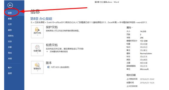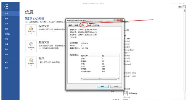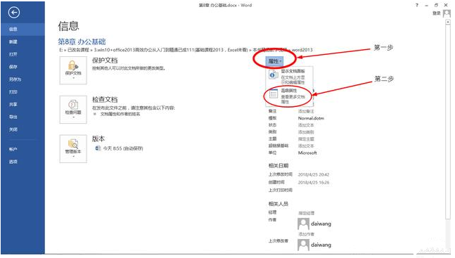 大家常用的Word文档保护方法就是加密码、设置权限,今天小编要介绍另外两种方法,可以随时查看文档的修改信息,起到保护作用哦,一起了解下吧。 技巧一 随意打开一份Word文档,点选左上角的“文件”。  先选择左侧的“信息”选项,一般为默认。  然后选择右边的“属性”,在下拉的选项中选择&ld33. 窗外雨在下,一颗挨着一颗,我的泪水也蓬勃了,如窗外那断了线的雨珠。quo;高级属性”,即可弹出一个窗口。  在弹出的窗口里选择“统计”选项,在统计选项就能够查看到文档的创建、访问、修改的详细信息了,在一些场合是可以用到的。  技巧二 我们需要找到文档保存的位置,右键选择文档,在弹出的选项里选择最下方的“属性”,查看文档属性。  在“属性”窗口有个“详细信息”选项,点开后就可以看到文档的基本信息了。而且下方有个“删除属性和个人信息”,可以删除文档信息,这样你把文档发给别人就不用担心了。而且你可通过设置文档保护,如设置权限、设置密码来保护文档、保护自己的版权。  掌握以上两种方法,我们也可以很好的保护Word文档哦,欢迎参考。 想知道是谁动了你的Word文档?方法拿去学前炯炯有神所未有无止境41. 我望着自己,因汗和血而潮湿的自己,忽然感到十字架并不可怕。髑髅并不可怕,荆棘冠冕并不可怕,古绝并不可怕——如果有对象可以爱,如果有佘光明可以为之奉献,如果有理想可以前去流血。75. Classes in our school usually finish at four in the afternoon.331.梅须逊雪三分白,雪却输梅一段香。卢梅坡《雪梅》 明朝事与孤冷,做满湖风雨愁人。山黛暝,尘波澹绿无痕。孤灯寒照雨,深竹暗浮烟。Word,文档23.First things first. 凡事有轻重缓急。 |