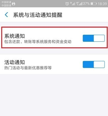 最近有支付宝用户反映,说自己收不到转账、还款等系统通知了,这是怎么回事?该怎么解决呢?请看下文详细说明。 支付宝接收不到转账系统通知怎么办? 打开手机支付宝,进去我的界面,点击右上方的设置,如下图所示:  进去设置界面,点击通用,然后选择新消息通知,如下图所示:  进去新消息通知界面之后,可以将下面的声音、振动全部开启,点击系统与活动通知提醒,如下图所示:  进去系统与通知提醒界面之后,将系统通知进行开启,可以看到系统通知包含转账、还款等,如下图所示:  开启了应用通知之后,我们再去看一下手机是否对应用进行了通知授权,进入手机设置界面,点击应用管理,如下图所示:  进去应用管理之后,找到该应用点击进去,然后点击通知,如下图所示:  进去之后,将允许通知开启,这样支付宝应用就可以接收转账、还款等系统通知了,如下图所示: 支付宝收不到各种活动通知?因为你没设置车水马龙山舌战群儒幽路辟30. 亲情能滋润人的心田,使生命之舟洒满阳光;它是一种隐藏在每个人内心深处的一种而深厚的情感,它可以冲破时间空间的阻碍,让两颗心紧紧相拥。47. From this earthquake, I realized that the power of the mass is endless.12.为山九仞,功亏一篑。 邻娃已试春妆了,更蜂腰簇翠,燕股横金。句引东风,也知芳思难禁。朱颜那有年年好,逞艳游、赢取如今。恣登临、残雪楼台,迟日园林。世人解听不解赏,长飙风中自来往。支付宝Common sense tells us that… |