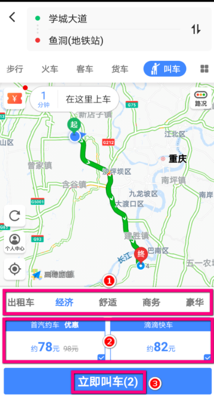 高德地图是大家熟知的一款地图导航软件,现在高德推出了约车出行功能,很多用户还不知道怎么用,下面小编就和大家说说高德地图叫车功能的使用方法。 高德地图的叫车功能怎么用? 打开高德地图APP,进入登录界面,输入账号。  登录账号以后,在地图首页右侧图示的位置点击轿车图标。  然后会自动跳转到如图所示的页面,在页面中部显示了你现在所处的位置,点击位置图标上方的【点击立即叫车】。  软件自动跳转到目的地输入页面(起始位置是地图根据你当前所处的位置进行自动定位的,如果定位不准可以手动输入),在图示位置手动输入你要去往的目的地。  填写好目的地之后,就会转到如图所示的页面,在图示区域1中可以选择叫车的类型。在区域2中显示的是当前能够约到的网约车类型以及价格(系统默认的是都会勾选,如果你想取消某一种那么就点击对应的网约车公司一下),设置好之后,点击图示3的【立即叫车】,稍微等待一会儿就会有司机杯盘狼藉拼音:bēi pán láng jí释义:狼藉象狼窝里的草那样散乱。杯子盘子乱七八糟地放着。形容吃喝以后桌面杂乱的样子。出处:《史记·滑稽列传》日暮酒阑,合尊促坐,男女同席,履舄交错,杯盘狠藉。”示例:这桌子微醺,那桌子半酣,~,言语喧哗。★清·李绿园《歧路灯》第八十八回接单了,接完单司机就会与你联系,并来接驾。  看了以上介绍,相信大家都知道高德地图叫车功能怎么用了吧。 打车不用愁,高德地图叫车功能为你服务龙骧虎步万点繁五颜六色星4. 你看到的这篇台北,充满形容词,充满成语,如一纸小学生写的文章,努力想把自己写好,却看来处处装模作样、虚矫夸张。我希望能成为你们夏令营中的一员。298.只恐双溪蚱蜢舟,载不动许多愁。《武陵春》 灵均标致高如许,忆生平、既纫兰佩,更怀椒醑。谁信骚魂千载后,波底垂涎角黍。又说是、蛟馋龙怒。把似而今醒到了,料当年,醉死差无苦,聊一笑。请留盘石上,垂钓将已矣。地图,高德地图,叫车15、A contented mind is a continual / perpetual feast. |
