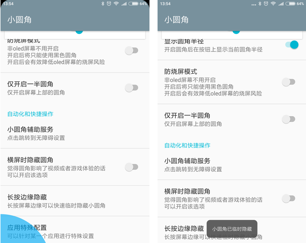 全面屏手机是线下很流行的一种屏幕造型,但是有些手机就挺尴尬了,屏幕四角都是方的,看着怪怪的,没法换手机就换个屏幕吧,需要用到一款app——小圆角。 小圆角原理是通过安卓的悬浮窗机制,来遮挡屏幕四角处,让直角变成圆角。开启APP后,首先需要赋予存储读取权限以及悬浮窗权限,这款APP来自个人开发者,其实权限申请得并不多,所申请的权限都和本身的功能有关,还是比较干净的。  小圆角APP界面,需要开启悬浮窗权限 接着,进入到APP当中,可以看到界面上方有一个显眼的开启圆角的按钮。这个按钮可能会随着界面滑动而收起来,想要用的时候,只要重新从上方将它拖出来就可以了。这个按钮周围的圆形滑竿是用来调节圆角的弧度的,调节的效果即时可见,相当不错。只要开启了圆角的开关后,那么这个圆角就会一直存在于安卓系统中几乎所有的界面,视觉效果可谓是焕然一新。  可以调节圆角大小  在所有界面都能生效,APP还有很多其他设置选项 当然,如果你想要用得更加贴心,那么就可以研究一下其他设置选项。例如,通过开启前台服务,可以降低后台被杀的几率,让圆角的存在更加问题;又例如如果用的是AMOLED屏幕,则可以开启防烧屏模式,圆角遮蔽的像素会自动微调,防止因为长时间不发光导致亮度不均出现烧屏现象;而长按边缘隐藏圆角这个功能,则可以在看视频这类场合下大发神威,让屏幕四角不至于因为圆角而不能完整显示视频内容,这款小圆角APP的确有不少亮点设计。  点击边缘隐藏圆角的功能很实用,看视频玩游戏时不会被圆角遮挡内容 虽然这是一款把屏幕四角变成圆角的APP,但是最近的版本,它有加入了一个挺好玩的功能——边缘闪光。开启了这个功能后,一旦有APP来通知,屏幕边缘就会亮起一圈跑马灯。如果你用的是AMOLED屏幕的话,视觉效果会尤13. 分手快乐,放手是种解脱。香烟爱上火柴就注定被伤害,在爱的世界里没有谁对不起谁,只有谁不懂得珍惜谁。为炫酷,值得一试。  边缘闪光通知功能,挺酷炫的 屏幕四四方方的太难看,就试试小圆角吧。 手机屏幕方角变圆角,强迫症必备座无虚席刻不容鹤发童颜缓14. 相信生活的使命,倾听心底的钟声,发掘自我的潜能,我们将获得无坚不摧的信心和勇气,所有瞻前顾后的疑虑驻足不前的懦弱和逆来顺受的消极统统都会被置于脑后。93. I think students should balance well between work and study.396.为有牺牲多壮志,敢教日月换新天。《七律?到韶山》 第四桥边,拟共天随住。今何许?凭栏怀古,残柳参差舞。剑河风急雪片阔,沙口石冻马蹄脱。全面屏,小圆角The author’s conclusion that switching to incineration would be more salutary for public health would be seriously undermined. |