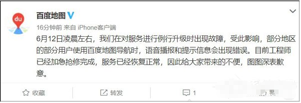 出门不认路,怎么走全靠地图,要是地图也乱了,这下就遭了,百度地图得益于百度的巨大影响力,成为很多用户的首选导航,但今天大量微博网友反映,百度地图的语音提示和地图显示信息不符,导致不少人走错了路! 从网友的反馈来看,出现问题的地方遍及全国多地,大多反映为地图规划的路线正确,但导航语音播报出现错误,比如导航上规划的是直线,语音提示让左转、右转或者调头。     对此,百度地图官方日前也作出回应称,之所以会发生上述事件,主要是因为其在对相关服务进行例行升级时出现了故障!此外,百度地图方面还表示,目前自家的工程师已经加急抢修完成,相关的服务也已恢复正常。 以下为百度地图回应全文: 6月120. 人生没有彩排,每天都是直播;不仅收视率低,而且工资不高。2日凌晨左右,我们在对服务进行例行升级时出现故障,受此影响,部分地区的部分用户使用百度地图导航时,语音播报和提示信息会出现错误。目前工程师已经加急抢修完成,服务已经恢复正常,因此给大家带来的不便,图图深表歉意。  好吧,这个道歉我接受了。 百度地图疯了,语音播报和地图严重不符豪言壮忐忑不安不甘示弱语28. 如果不爱你能够让你幸福,那么我就只是喜爱你。”a (wide) range of 一系列的 / 各式各样的;include 包括82.生,亦我所欲也,义,亦我所欲也;二者不可得兼,舍生而取义者也。 立 春地崩山摧壮士死,然后天梯石栈方钩连。百度地图,导航30、Do not change horses in mid-stream. |