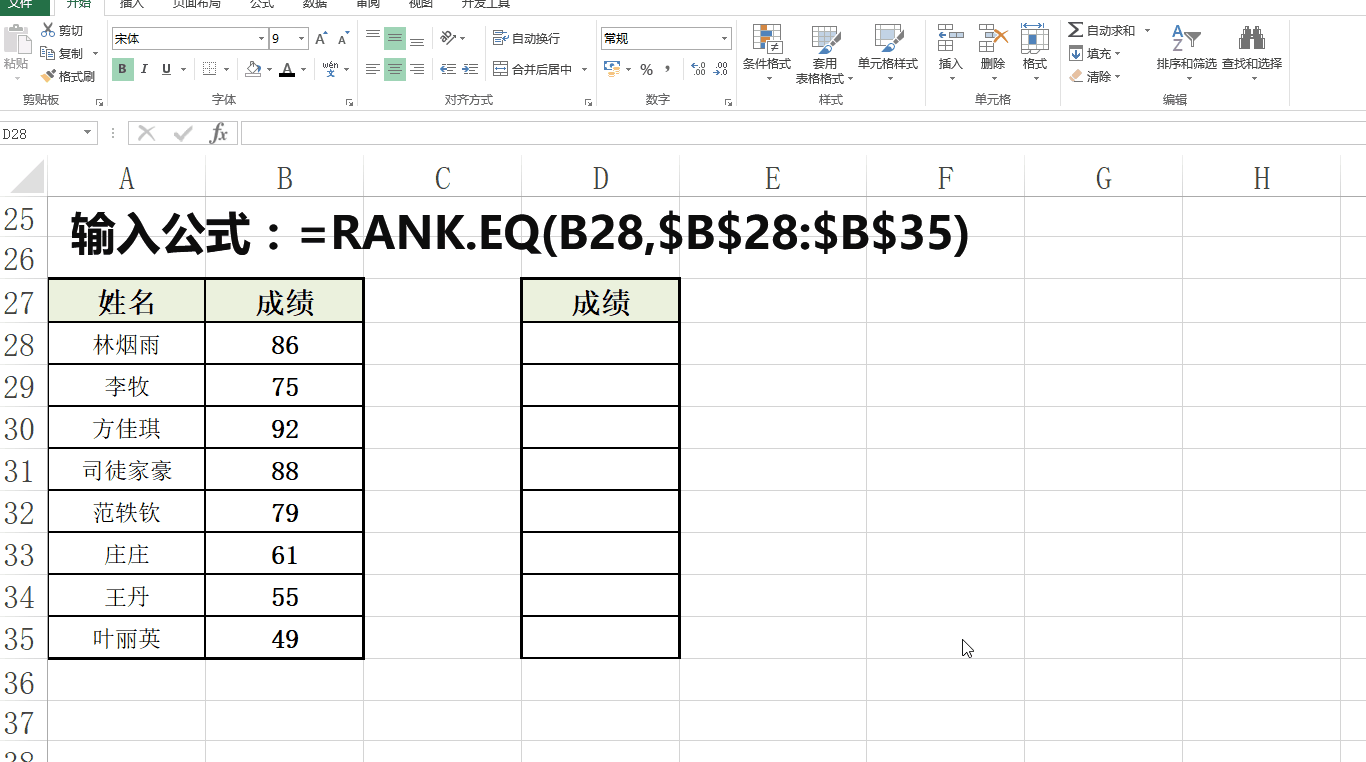 处理Excel表格数据时会用到各种函数公式,很多人觉得这些计算公式难以掌握,各种数据搭配变来变去。今天小编就先和大家说说数据整理这方面的几个函数公式,多花时间练习就能掌握。 一、计算成绩超过85分的人数 对Excel表格中的数据按照成绩、业绩等指标进行整理,例如计算超过某分数46. 感情的事总是很难说清楚,我知道分手总是令人难过的,但无论如何,我永远都会站在你这一边,支持你。努力让自己快乐起来吧,好吗?线的人数。 输入公式:=COUNTIF(B2:B9,">85")  二、统计各分段的人数 需要了解各分段的人数,无需一遍一遍去筛选,采用FREQUENCY函数就可以了。不过要记住的是,必须先选定区域,在F17里输入函数公式后,点击【Shit+Ctrl+Enter】来填充数据。 输入公式:=FREQUENCY(B16:B23,{60;70;80;90})  三、数据排名(如成绩) 接下来的这个函数应用也是相当普遍的,如将学生的成绩进行排名。 输入公式:=RANK.EQ(B28,$B$28:$B$35)  四、消除相同成绩给排名带来的排列影响 如果两个人拥有相同的成绩,在排名的时候就要按照人数来往后推,如两个第2名,那么接下去的名次就应该是第4名而不是第3名。但是有些人不习惯这样的排名方法,倾向于按照分数多少来排名,那这样的操作又要怎么实现呢? 输入公式:=SUMPRODUCT(($B$40:$B$47>B40)/COUNTIF($B$40:$B$47,$B$40:$B$47))+1  五、求女生的平均成绩 在整理Excel数据时需要单个条件为前提的平均数,要怎么实现呢?如例子中的这个女生的平均成绩。 输入公式:=AVERAGEIF(C52:C59,"女",B52:B59)  六、求多条件的女生平均成绩 上一个说的是单个条件的平均数函数求值过程,这里是以多个条件为前提的,如求【女生】、【语文成绩】,这两个条件的平均数。 输入公式:=AVERAGEIFS(B64:B71,C64:C71,"女",D64:D71,"语文")  Excel中函数公式的应用学习绝不是一朝一夕就能掌握的,大家需要多花时间练习、还要学会变通才行。 整理Excel数据少不了这些公式,请了解!亲密无风雨火烧眉毛同舟间64. 尘世是复杂的,个性是在生存激烈的今日,为了生存,人们往往疲于奔命,由此暗淡了笑容。其实我们大可不必如此,我们要坦诚地对待生活,绽放笑颜,更会成就事业,成就自己,取得更骄人的成绩。37.无可非议 blameless / beyond reproach396.为有牺牲多壮志,敢教日月换新天。《七律?到韶山》 山空天入海,倚楼望极,风急暮潮初。一帘鸠外雨,几处闲田,隔水动春锄。新烟禁柳,想如今、绿到西湖。犹记得、当年深隐,门掩两三株。迁者追回流者还,涤瑕荡垢清朝班。ExcelPrivate restaurants serve gourmet food for $70 per person; incentives boosted agricultural production 25 percent and industrial output 80 percent in just three years; farmers are encouraged to raise as much as they can on their own plots, and some become almost rich in the process.(注意本句中分号的使用) |