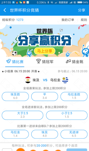2018世界杯刚开始那几天,互联网彩票还处于未封禁状态,现在看球想买彩票还得去实体店。如何不出门网上参与世界杯呢?有意思的活动多着呢。 世界杯有奖竞猜之手机QQ下注赢金豆 首先是手机QQ里的“彩票竞猜”栏目,用户可以使用金豆投注,可以压胜负,也可以压总进球数的奇偶。  图8 手机QQ猜世界杯 世界杯有奖竞猜之支付宝下注赢蚂蚁积分 接着来到支付宝客户端,进入世界杯积分竞猜栏目,可以用蚂蚁积分来进行下注胜负平竞猜和全场进球数竞猜,然后赢得的也是蚂蚁积分哦。  图9 支付宝世界杯积分竞猜 世界杯有奖竞猜之360下注赢实物奖品 接着就是360举办的“燃情世界杯,360送豪礼”活动,活动需要使用360安全浏览器进入活动页面来参加,用户可以免费竞猜各场赛事的胜负平,按猜对场数换实物奖品,还能参与夺取超级大奖。还有就是一如既往的套路换取机会卡。  图10 燃情世界杯,360送豪礼 世界杯有奖竞猜之百度下注空手套现金 然后就是百度体育频道的&l村歌社舞拼音:cūn gē shè wǔ释义:指民间歌舞。出处:宋·杨万里《宿新市徐公店》诗春光都在柳梢头,拣折长条插洒楼。便作在家寒食看,村歌社舞更风流。”示例:~自真率,何用广乐张公侯。★明·刘基《题富好礼所畜村乐图》诗dquo;全民世界杯竞猜”,用户只需要登录百度账号即可进行当日赛事的胜负平竞猜,无需任何投入(当然邀请好友奖金可翻倍),猜中后与同样猜中的参与人员瓜分该场次奖金。最快捷进入方式就是打开百度手机客户端然后点击搜索栏旁边的红包按钮。  图11 百度全民世界杯竞猜 世界杯有奖竞猜之vivo下注赢积分换礼物 vivo也有“竞猜也非凡 决胜世界杯”有奖竞猜活动,每个用户首次登陆可获得50积分,用户可以用积分进行胜负平投注,获得的积分可以兑换实物奖励,首次投注还能获得一次抽奖机会。  图12 vivo的赛事竞猜 世界杯有奖竞猜之微博优益C世界杯竞猜 怎能少的了微博的参与呢?在微博里为用户准备了优益C世界杯竞猜活动,用户签到及做任务可得金币,金币用于赛事竞猜,金豆可以换取实物或购物卡,还可参与抽奖活动。 赌球可不是什么好事,世界杯还有更多好玩的活动等着你。 别让世界杯变全民赌博,有奖竞猜也能玩high想了又想(朝思生龙活虎暮想)骄阳似火37. 缘分有时候,就是各种的混搭。你以为适合自己的人,最后反而会分手。而你以为完全不搭的人,反倒是能过上一辈子。因为感情绝不是适宜就能在一起,而是越能有新鲜感,就越想要在一起。所以,不要纠结于适宜不适宜。爱,是相配的证明。能爱上,就是最适宜的。人们应该增加对儿童教育的重视,因为他们会在祖国的未来扮演重要的角色。174.浮云游子意,落日故人情。《送友人》 彭城夜宿燕子楼,梦盼盼,因作此词别离在今晨,见尔当何秋。2018世界杯,世界杯竞猜9.All work and no play makes jack a dull boy. 只工作不玩耍,聪明孩子也变傻。 |