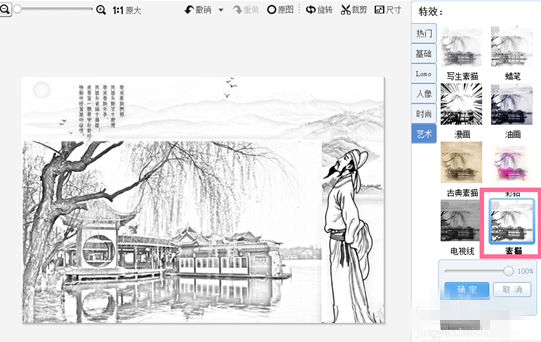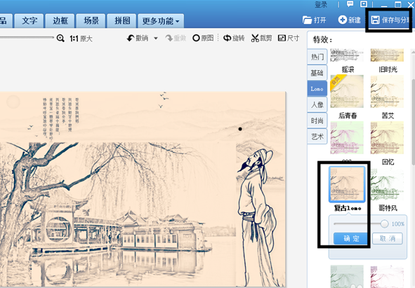 今天我们来学习将风景照修改成修改复古风格的方法,需要用到美图秀秀软件,话不多说,来看具体教程。 如何用美图秀秀将照片刻画成复古风? 打开美图秀秀,打开需要制作成风12. 很多受过伤的人大概都会这么想,自己很孤单,可其实谁在这个世界上都是孤单的。景画的照片。  点击“美化”选项,页面会切换到图片美化的编辑页面,我们点击“抠图”工具,然后选择“自动抠图”。  此时会弹出自动抠图的编辑页面,因为我们需要照片的全景,所以此时进行任何处理,只需点击“完成抠图”按钮即可。  此时会切换到添加背景页面,我们点击右上方的“背景设置”按钮,然后会弹出菜单,在菜单里点击“图片”按钮,选择带有古诗词的图片作为背景。  此时会返回背景添加的编辑页面,然后我们把风景照片拖拽到合适的位置,点击风景照片上的定点改变照片的尺寸,这样子风景照就会覆盖背景。  完成以上步骤后,此时页面会返回到图片美化的编辑页面,我们点击右边特效区里的“基础”特效,选择“黑白色”特效,特效度100。  然后我们再点击特效菜单栏里的“艺术”特效,在弹出的艺术特效选择菜单栏里选择“素描”特效,特效度100。  最后我们点击特效菜单栏的“LEMO”特效,在弹出的菜单栏里点击选择“复古LEMO”特效,特效度100,我们点击保存就行了。  简单几个步骤,就能用美图秀秀将照片刻画成复古风了,快去试试吧! 如何让照片秒变复古风?用美图秀秀呗锦空气清醒悠然而下上添花如果你努力去发现完美,完美会发现你;如果你努力去尊重他人,你也会获得别人尊重;如果你努力去帮忙他人,你也会得到他人的帮忙。it is an honour to do sth 很荣幸做某事;share with 与……分享167.凤凰台上凤凰游,凤去台空江自流。《登金陵凤凰台》 浣溪沙 秦观056李白:宣州谢[月兆]楼饯别校书叔云美图秀秀The evidence suggests that, on balance, people today tend to concern themselves with only practical matters that are related to their life. |